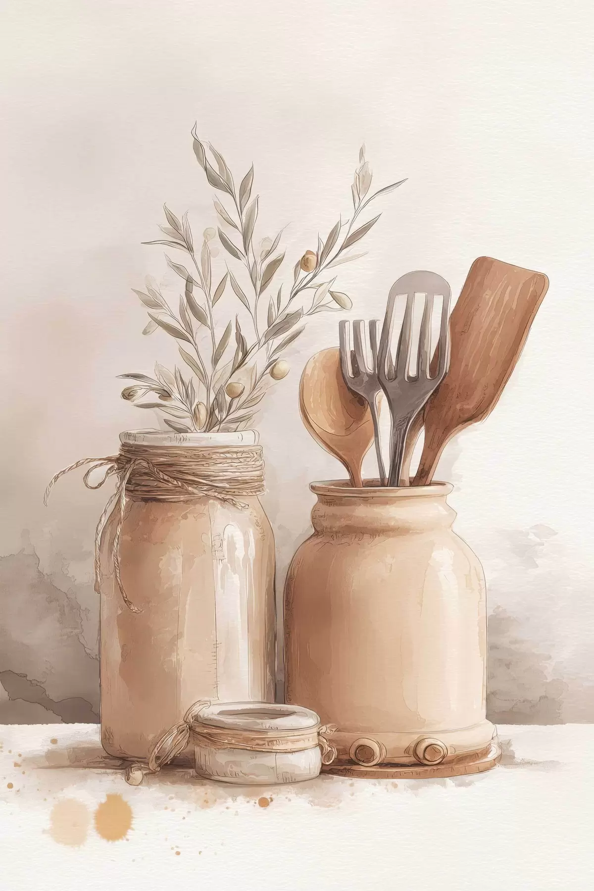 Tableau nature morte de cuisine dans un style aquarelle s47125