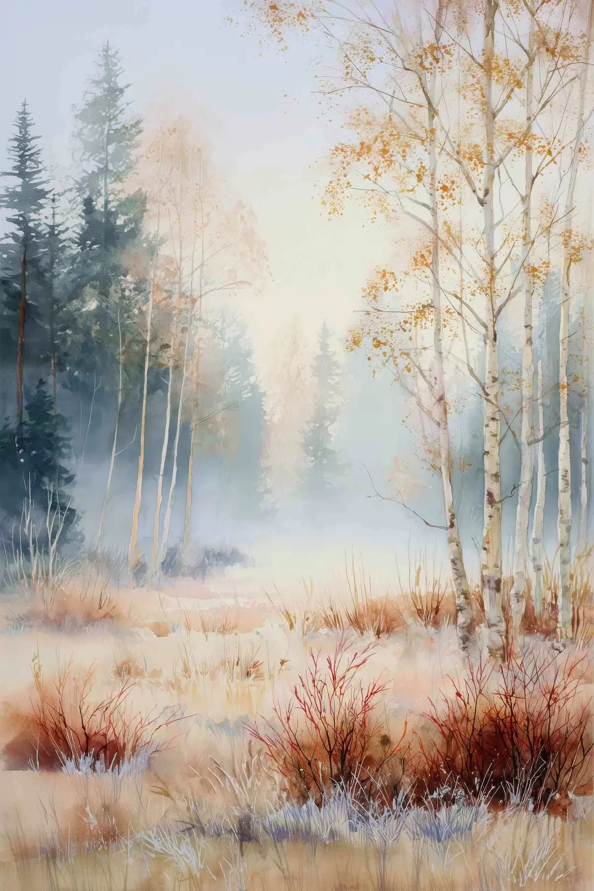 Tableau paysage premières gelées dans la forêt Nr s47130