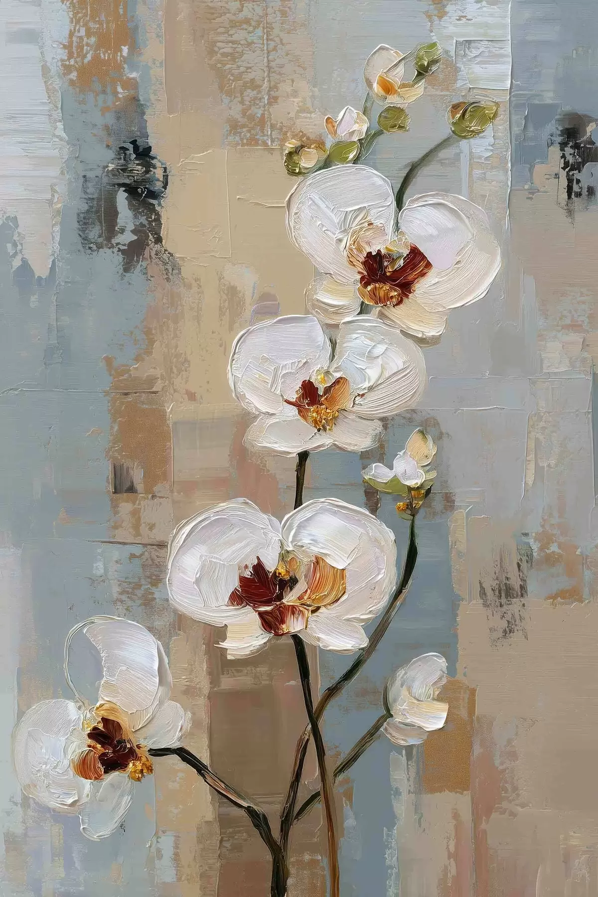 Tableau fleurs d'orchidées blanches dans le style de la peinture à l'huile Nr s47131