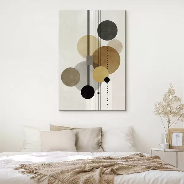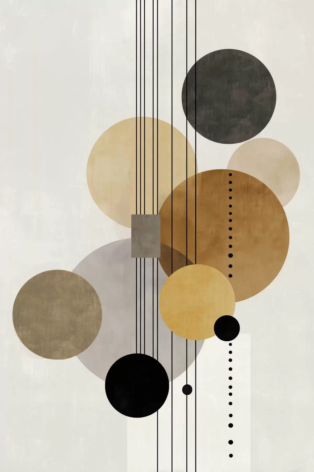 Tableau abstraction avec des cercles et des lignes dans des couleurs chaudes Nr s47238