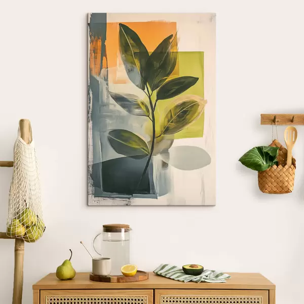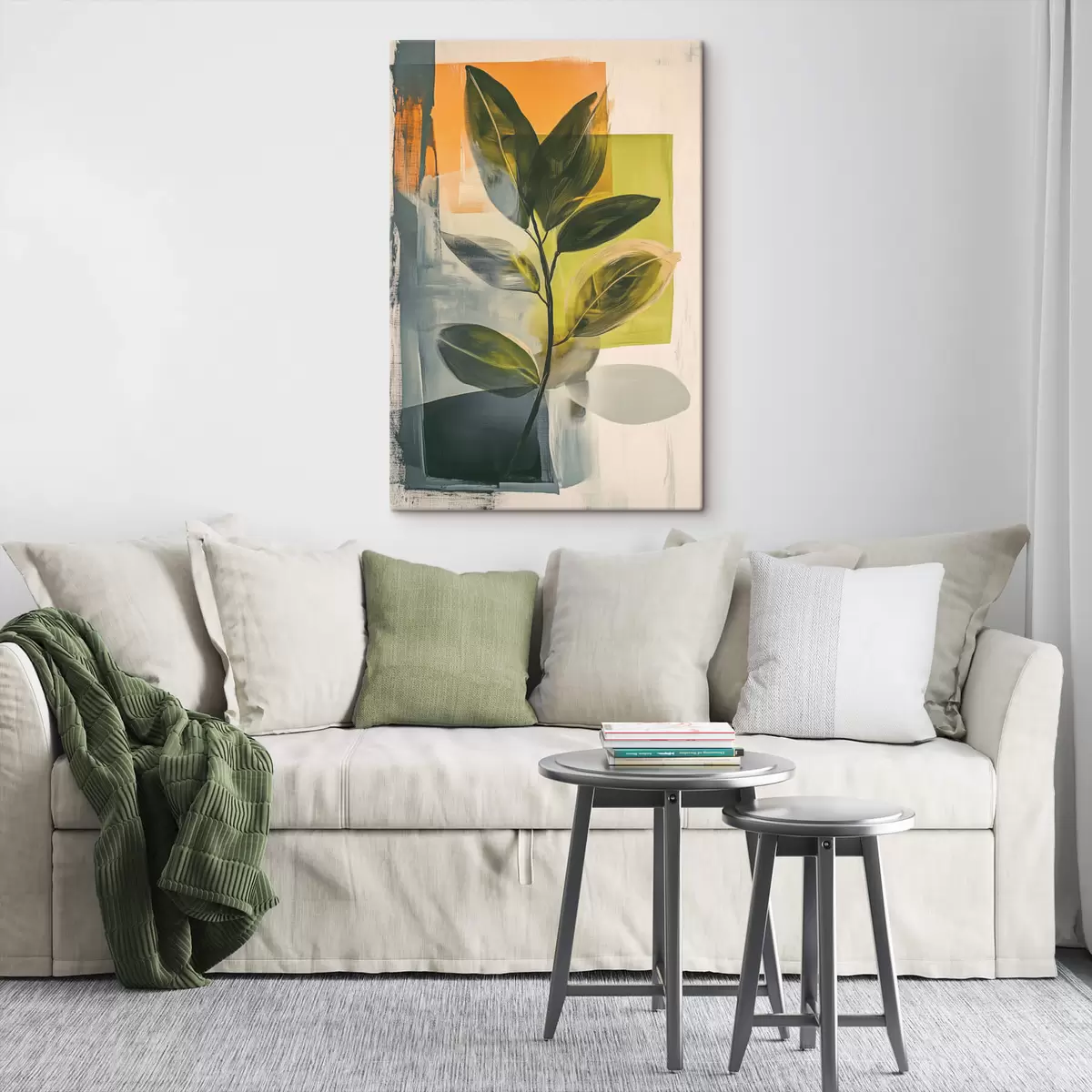 Tableau Une branche de feuilles sur un fond abstrait Nr s47249