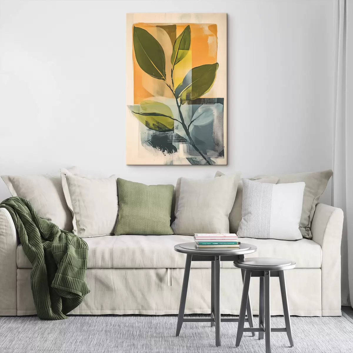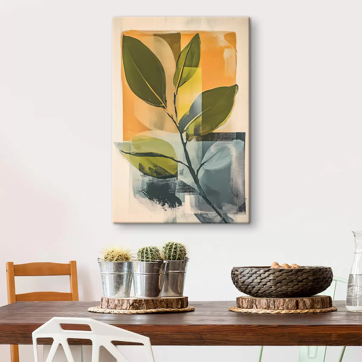 Tableau Une branche de feuilles sur un fond abstrait Nr s47250