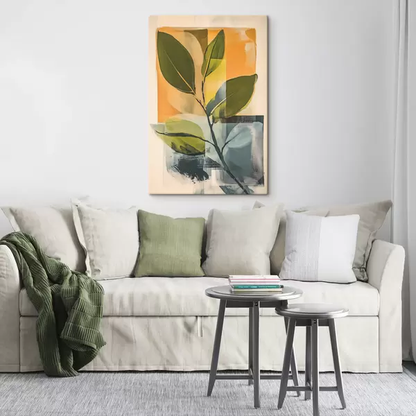 Tableau Une branche de feuilles sur un fond abstrait s47250