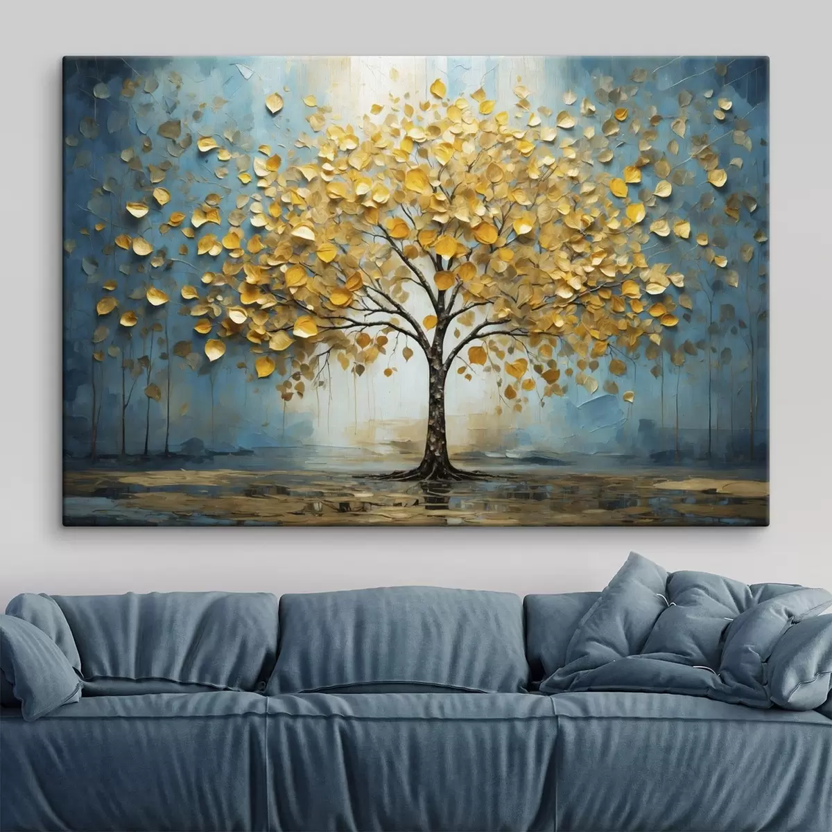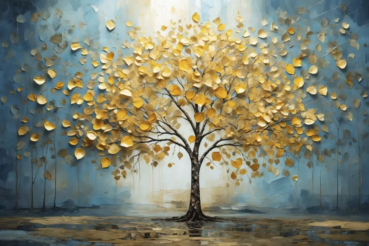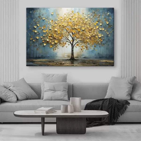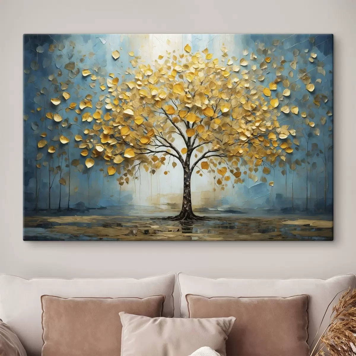 Tableau Arbre aux feuilles jaunes sur fond bleu Nr s47256