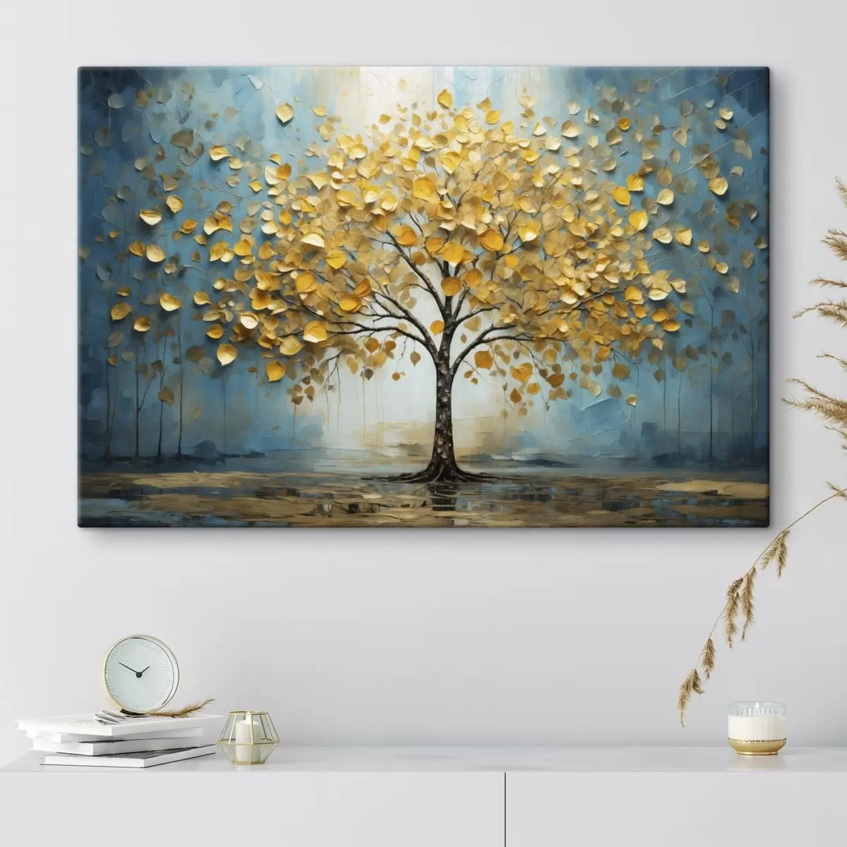 Tableau Arbre aux feuilles jaunes sur fond bleu s47256