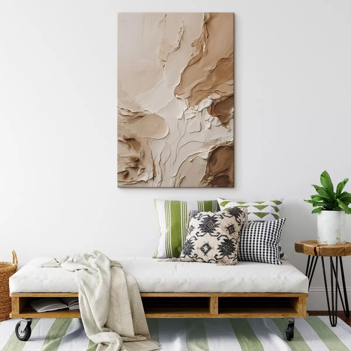 Tableau Traits texturés beiges aux lignes douces s47274