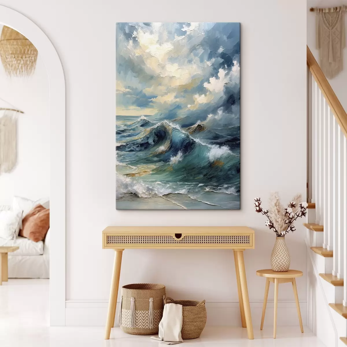 Tableau Vagues sous un ciel nuageux et lumineux s47275