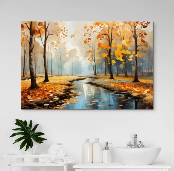 Tableau Forêt automnale avec un ruisseau et des feuilles jaunes Nr s47278