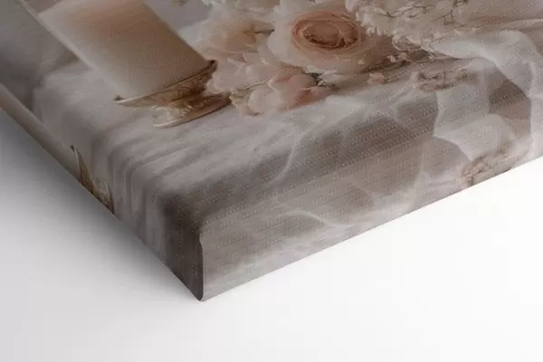 Tableau Fleurs crème à côté d'une bougie allumée Nr s47281
