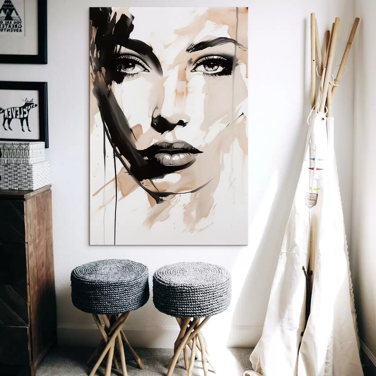 Tableau Portrait féminin abstrait dans des tons clairs Nr s47290