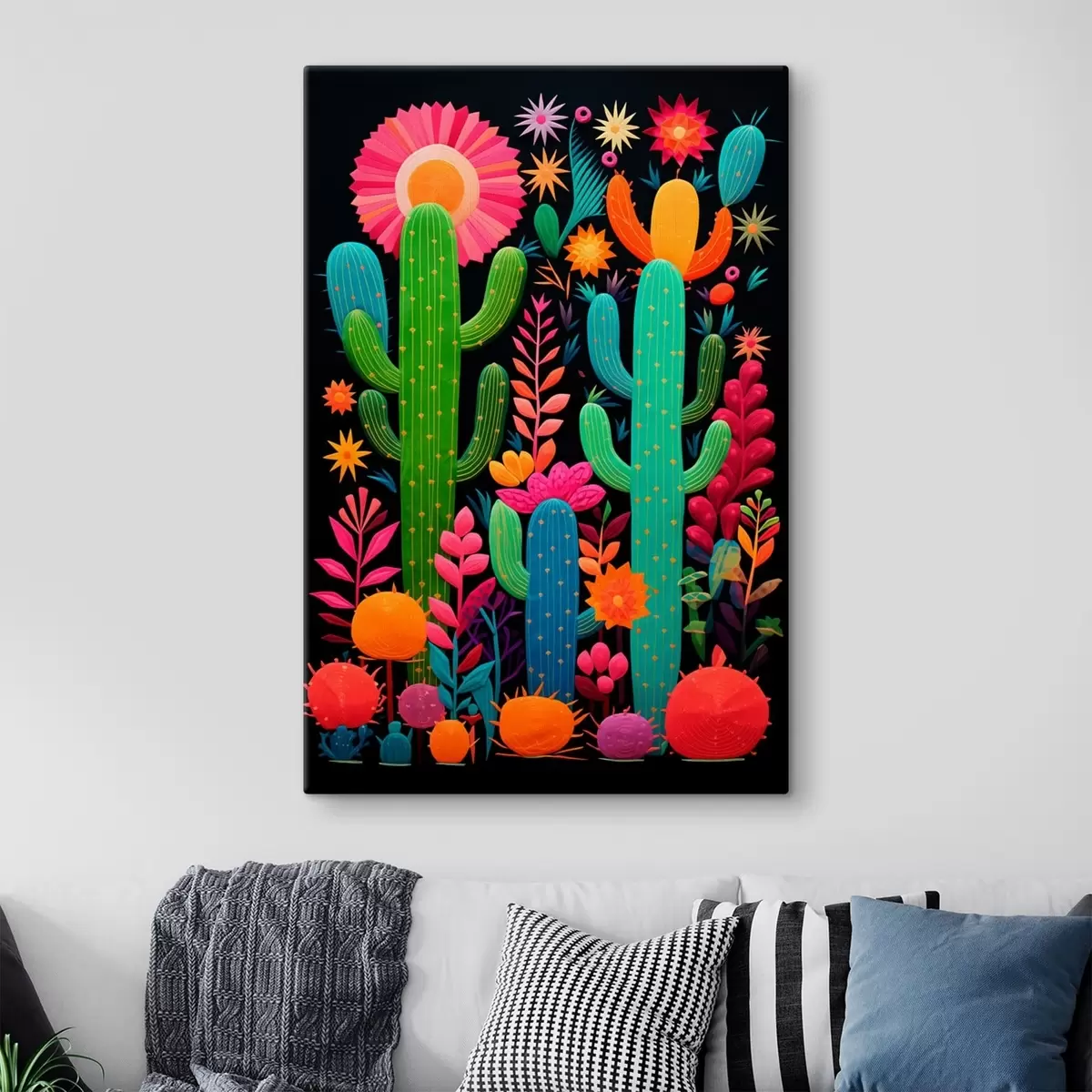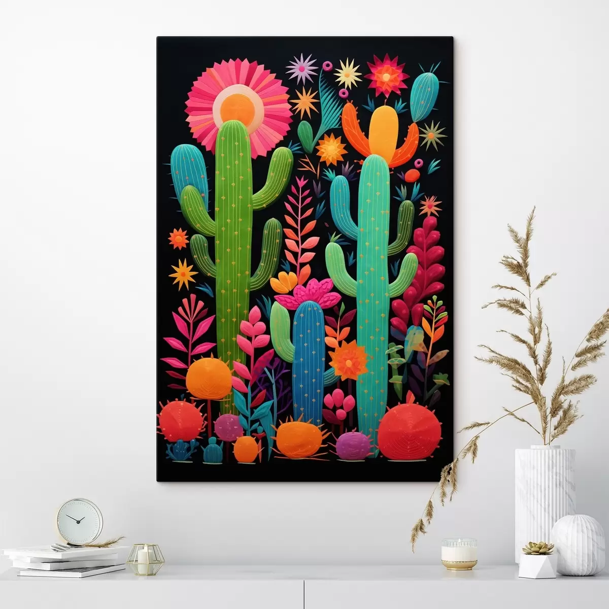 Tableau Cactus et fleurs éclatants sur fond sombre Nr s47297