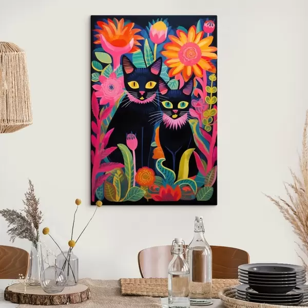Tableau Deux chats noirs parmi des fleurs aux couleurs vives Nr s47299