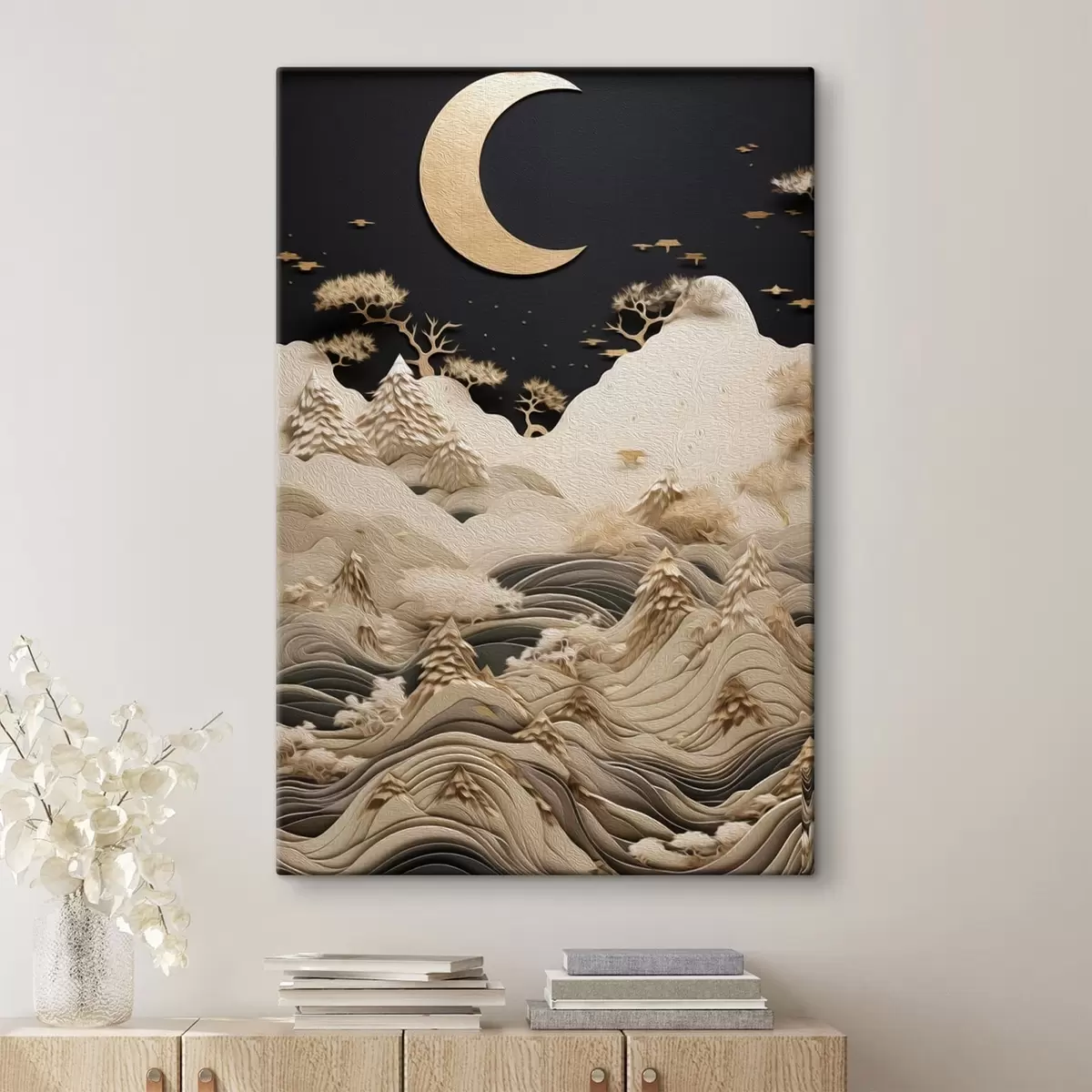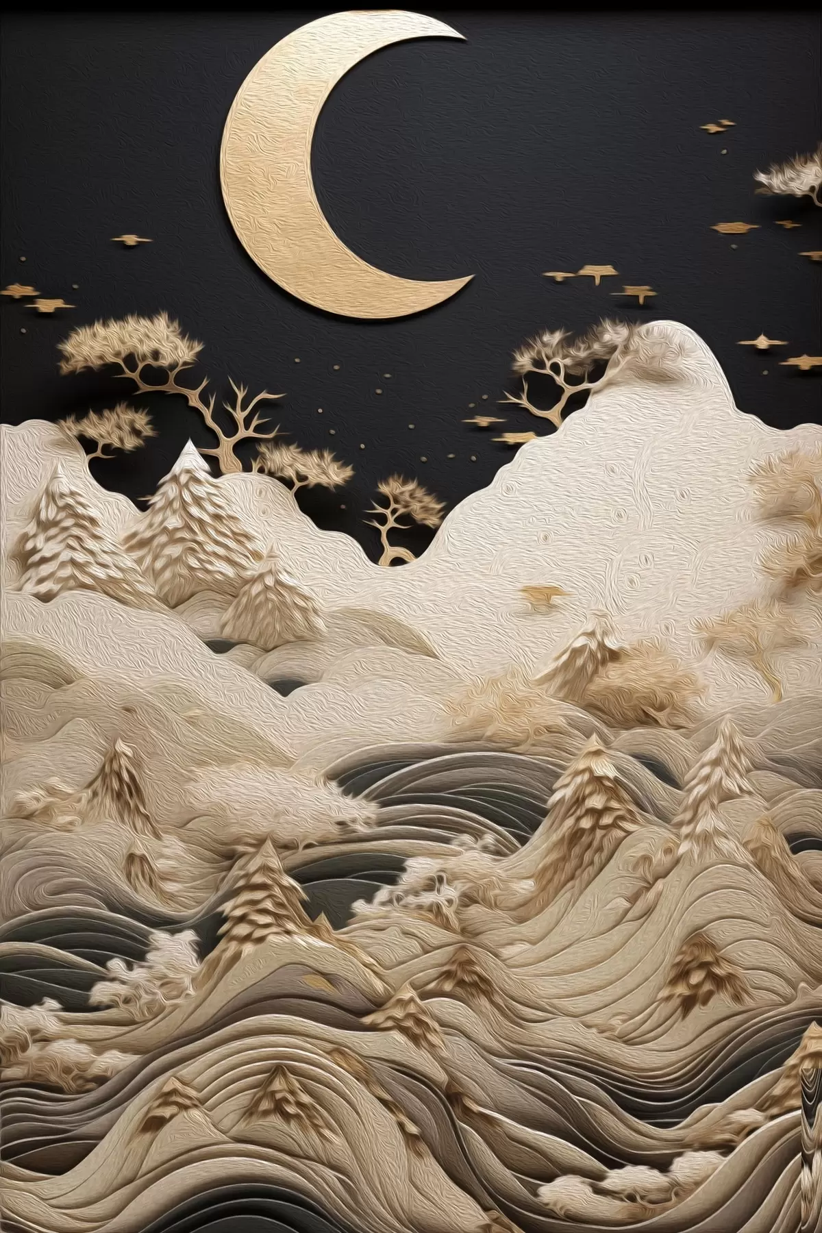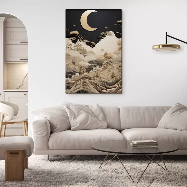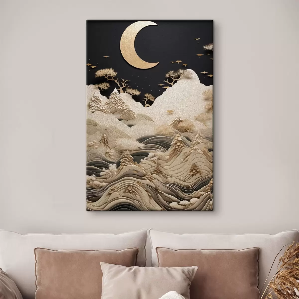 Tableau Montagnes et arbres stylisés sous la lune Nr s47300