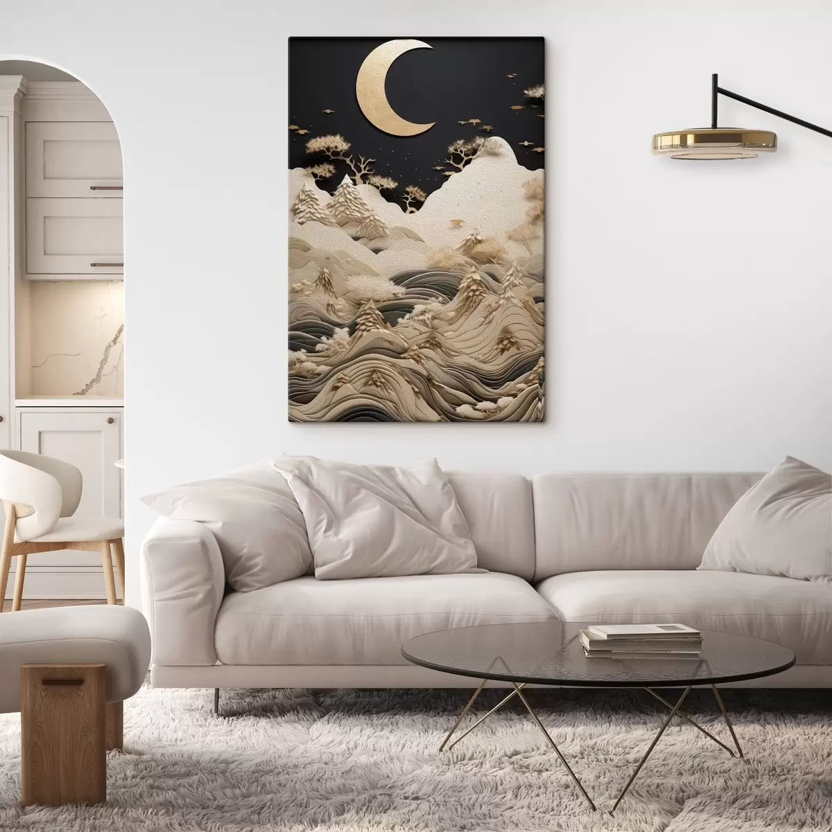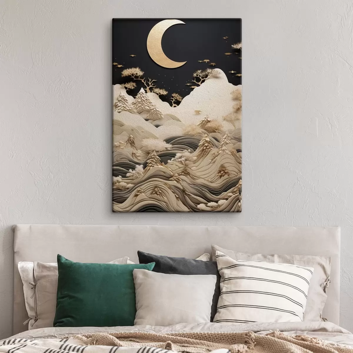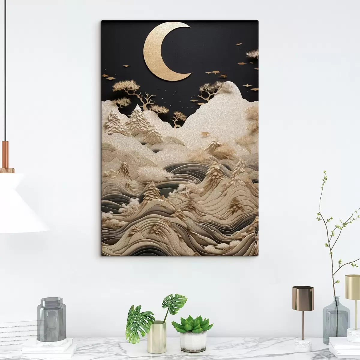 Tableau Montagnes et arbres stylisés sous la lune Nr s47300