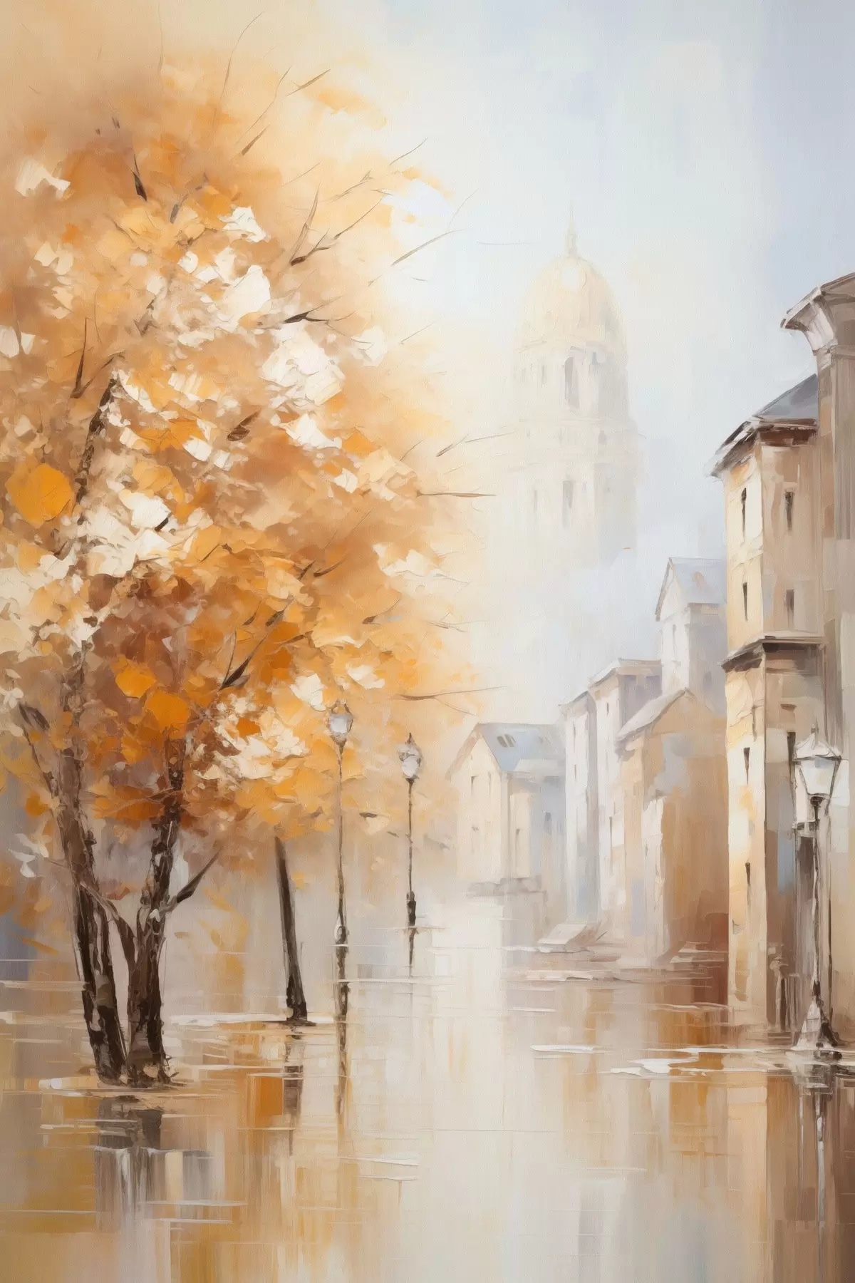 Tableau Rue bordée d'arbres et dôme dans la brume Nr s47304