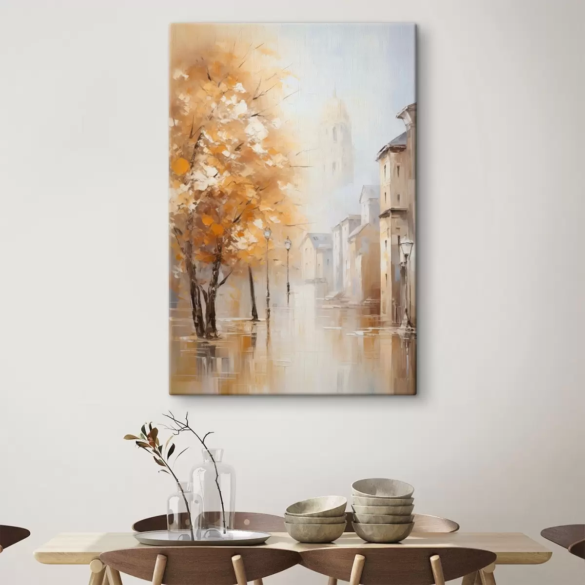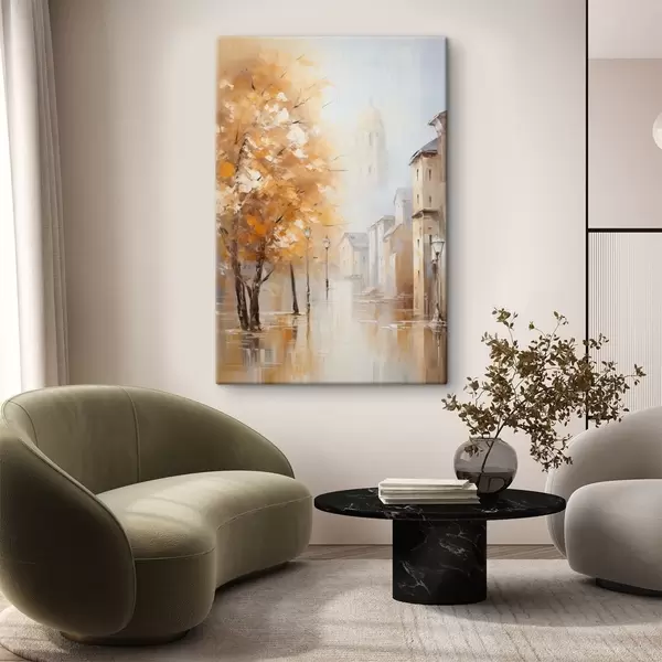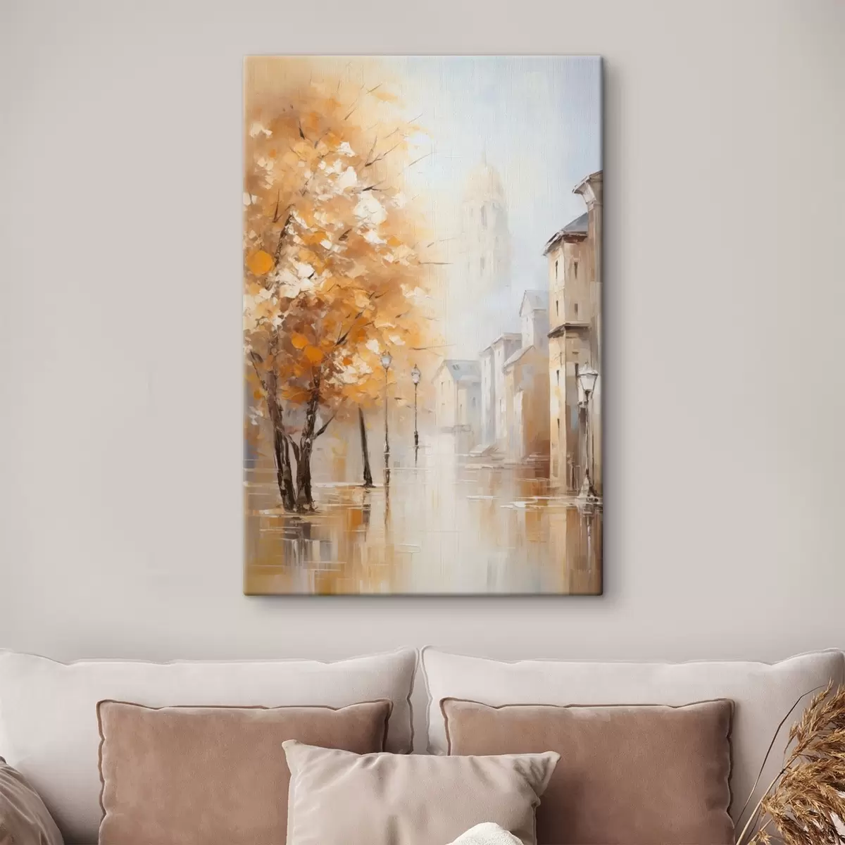 Tableau Rue bordée d'arbres et dôme dans la brume s47304