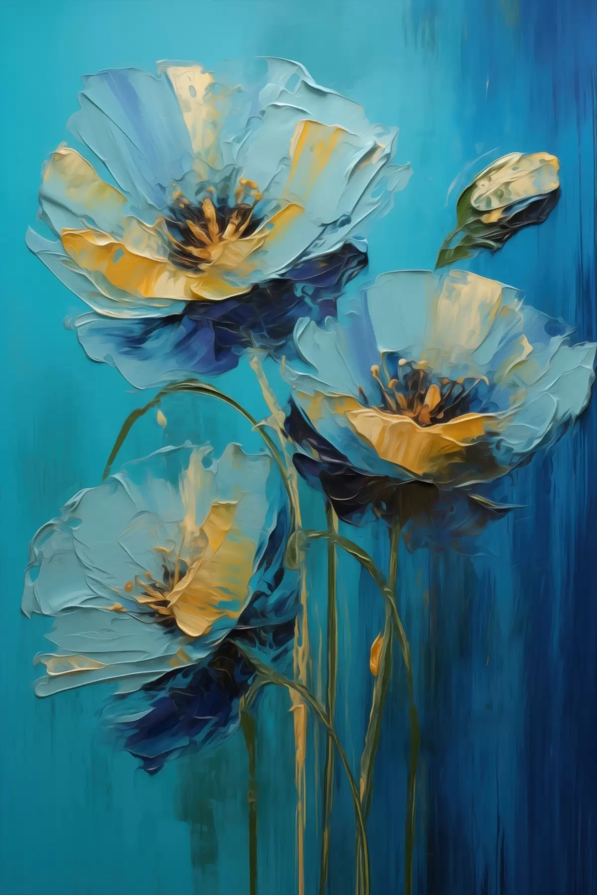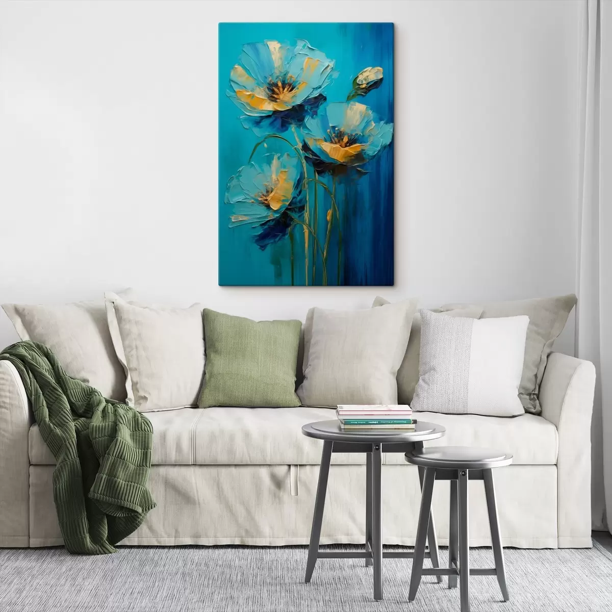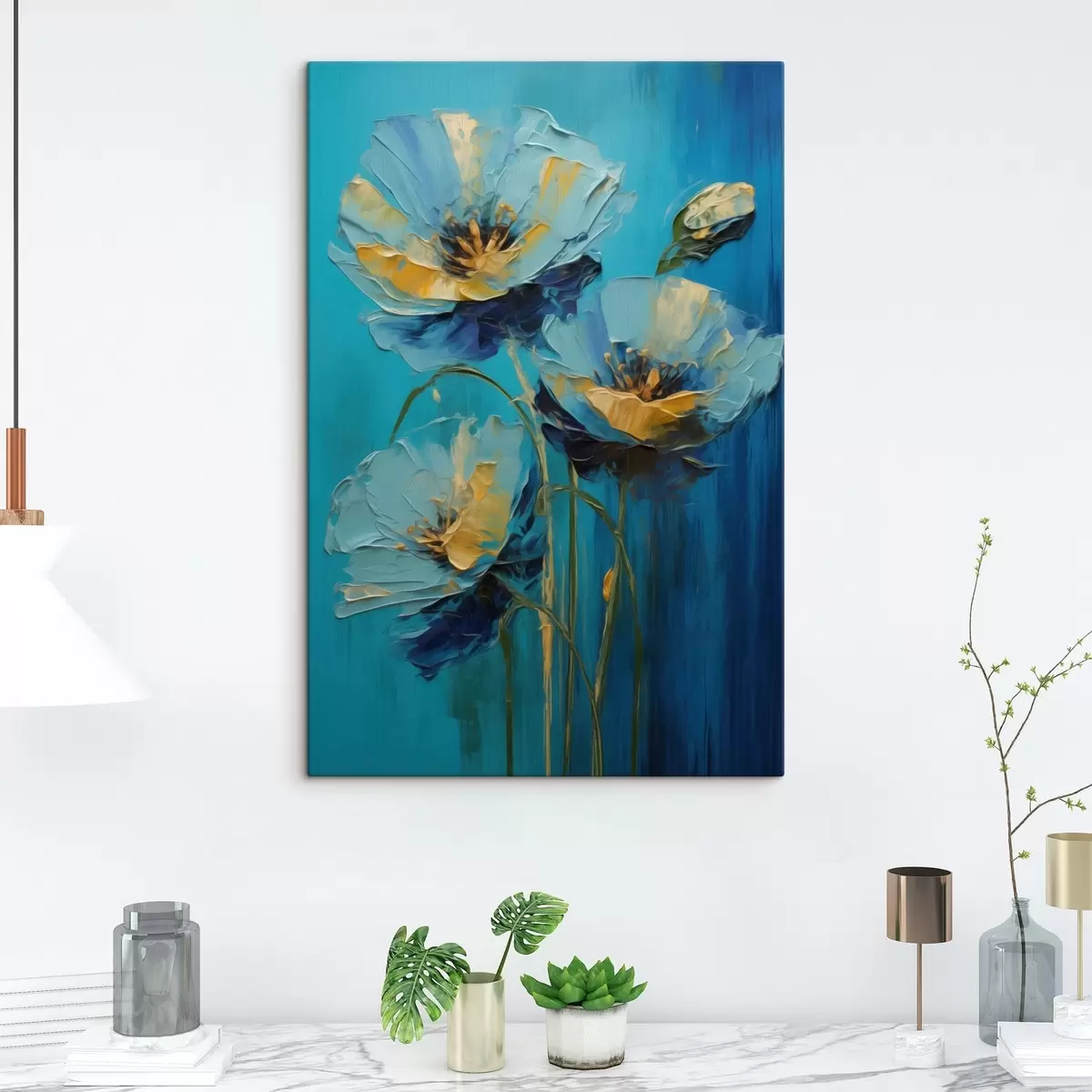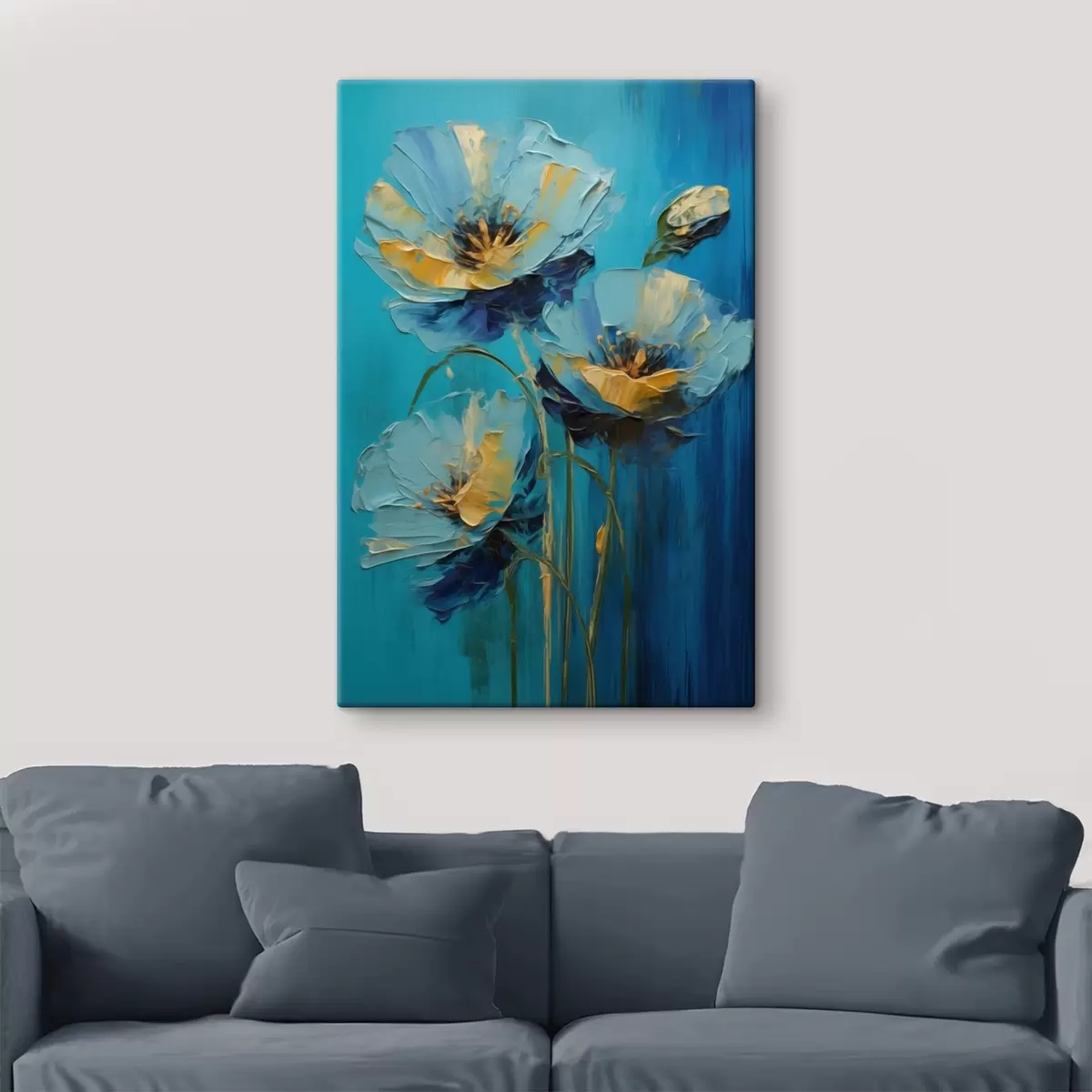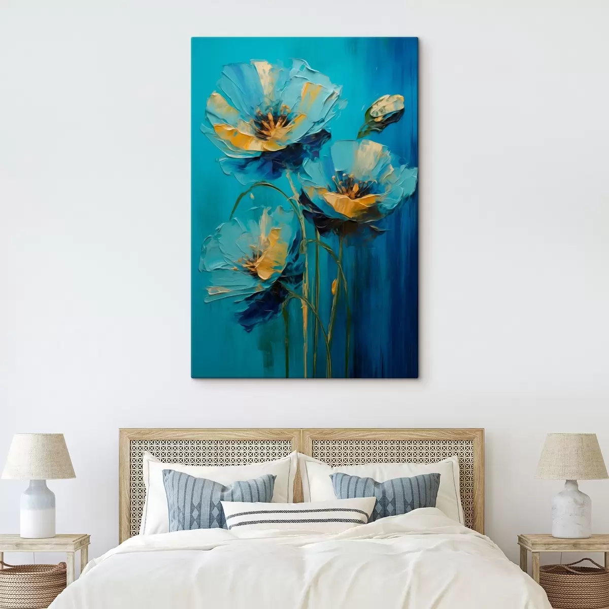 Tableau Fleurs bleues sur fond vif Nr s47324