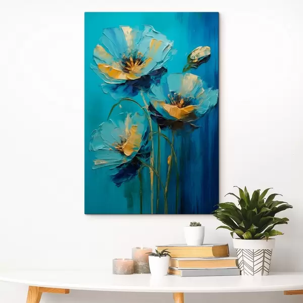 Tableau Fleurs bleues sur fond vif Nr s47324