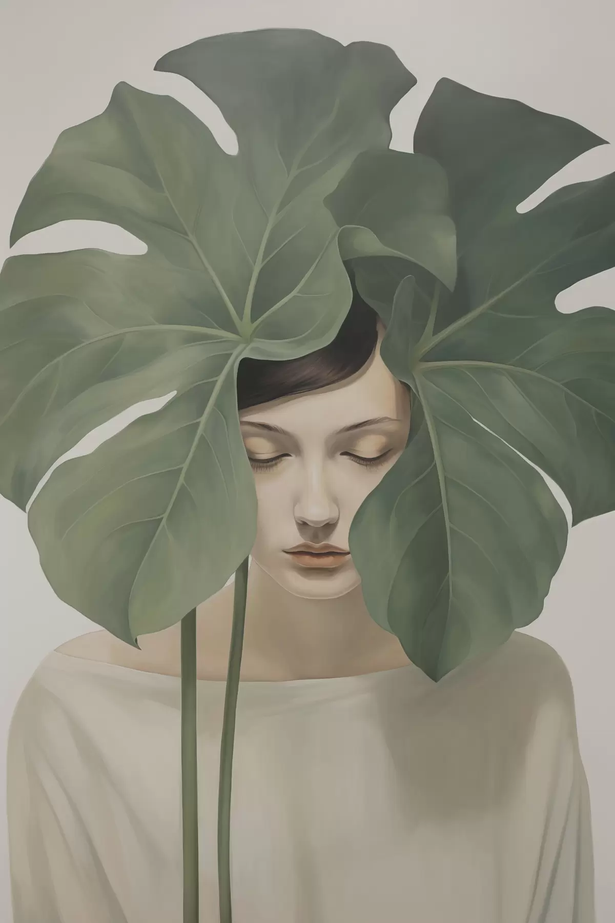 Tableau Fille avec des feuilles tropicales Nr s47335