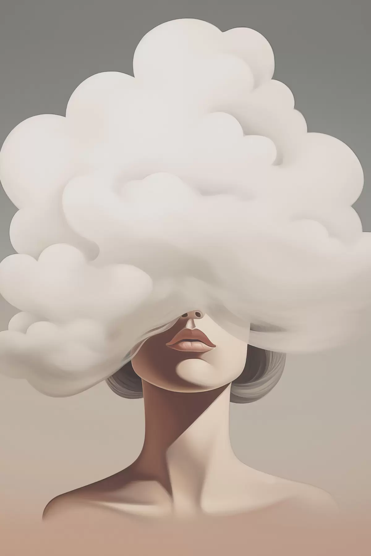 Tableau Le visage de la jeune fille est recouvert d'un nuage. Nr s47337