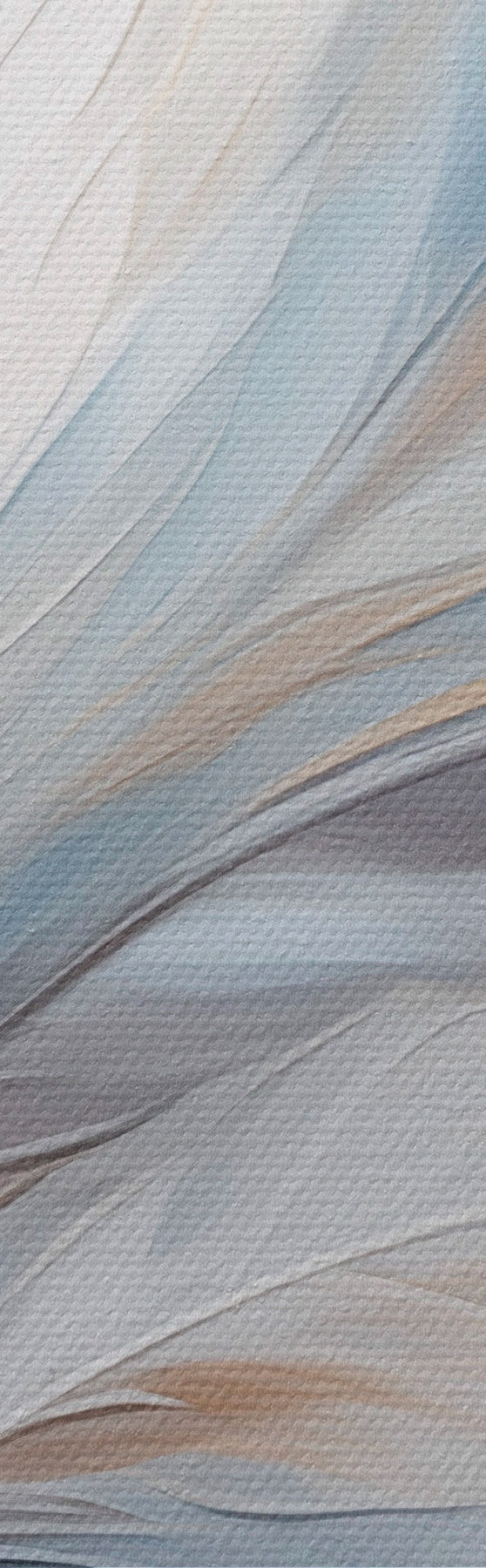 Tableau Plumes délicates bleu clair et marron à la texture douce et éthérée, sur fond blanc. s47416
