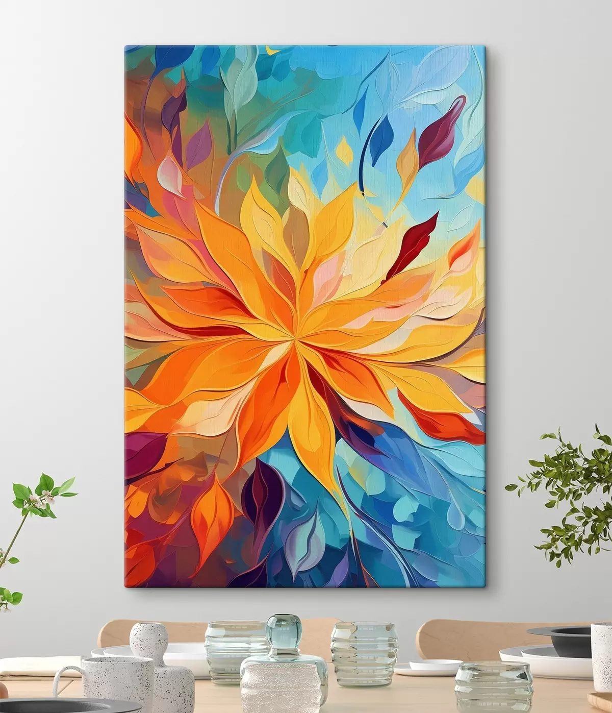 Tableau Fleurs abstraites, imitation peinture à l'huile s47445