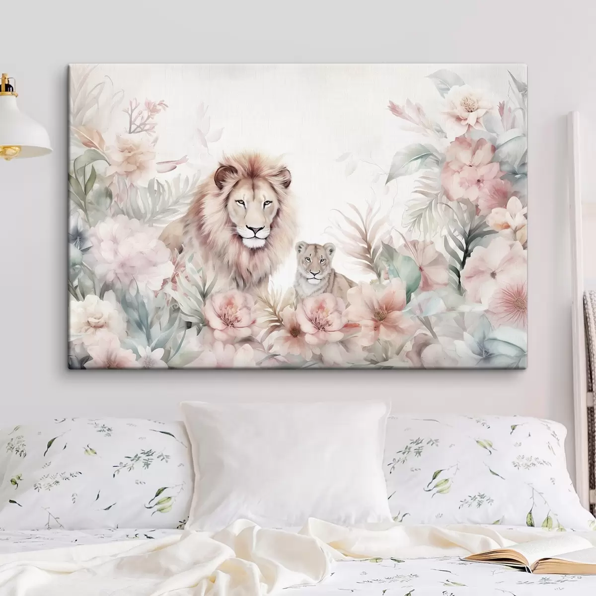 Tableau Lions dans les fourrés tropicaux, imitation aquarelle s47640
