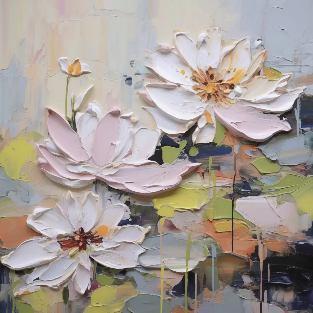 Tableau Fleurs de lotus abstraites, peinture imitation s47721