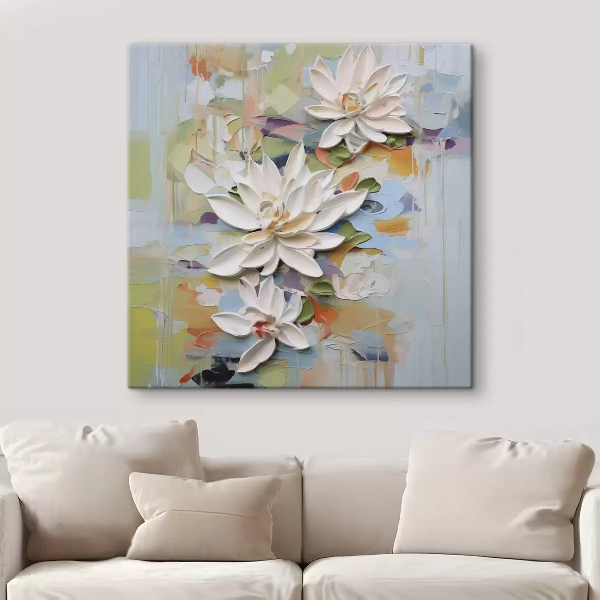 Tableau Fleurs de lotus abstraites, peinture imitation s47722