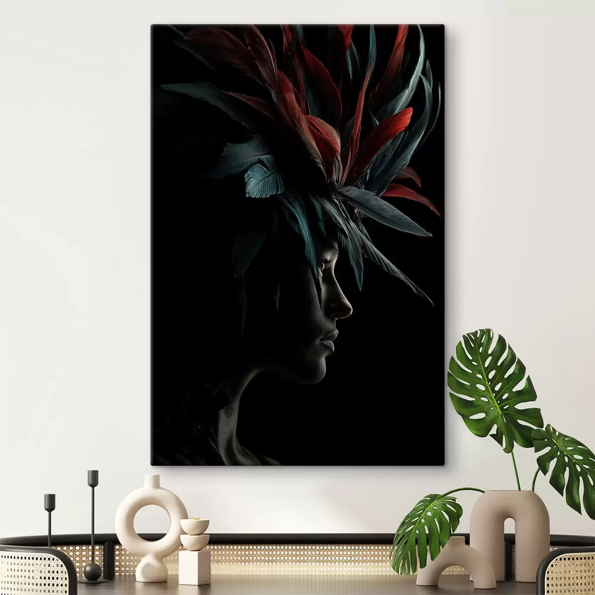 Tableau Portrait avec des plumes s47735