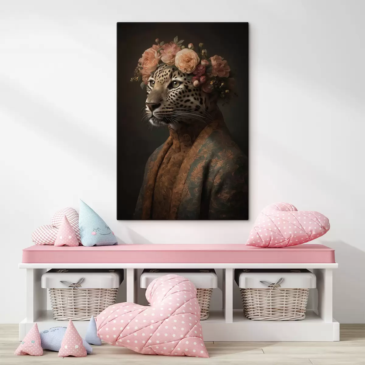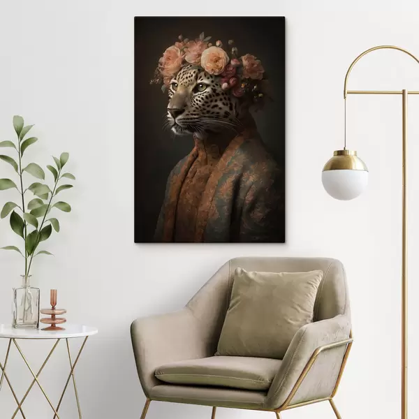 Tableau Léopard avec des fleurs s47737