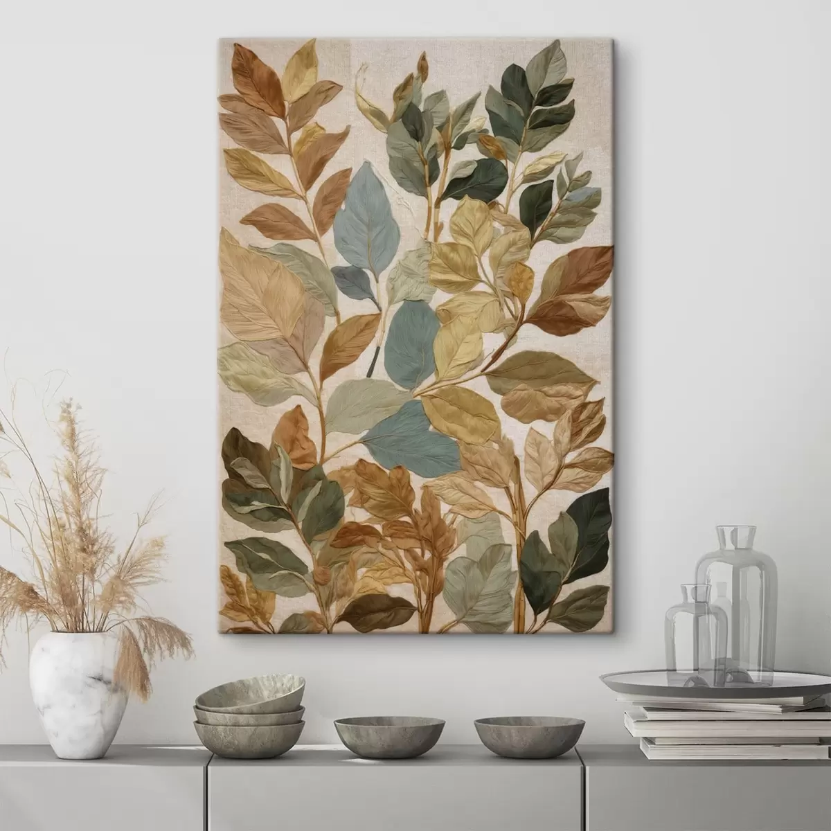 Tableau Feuilles décoratives dans une palette naturelle chaleureuse s47759