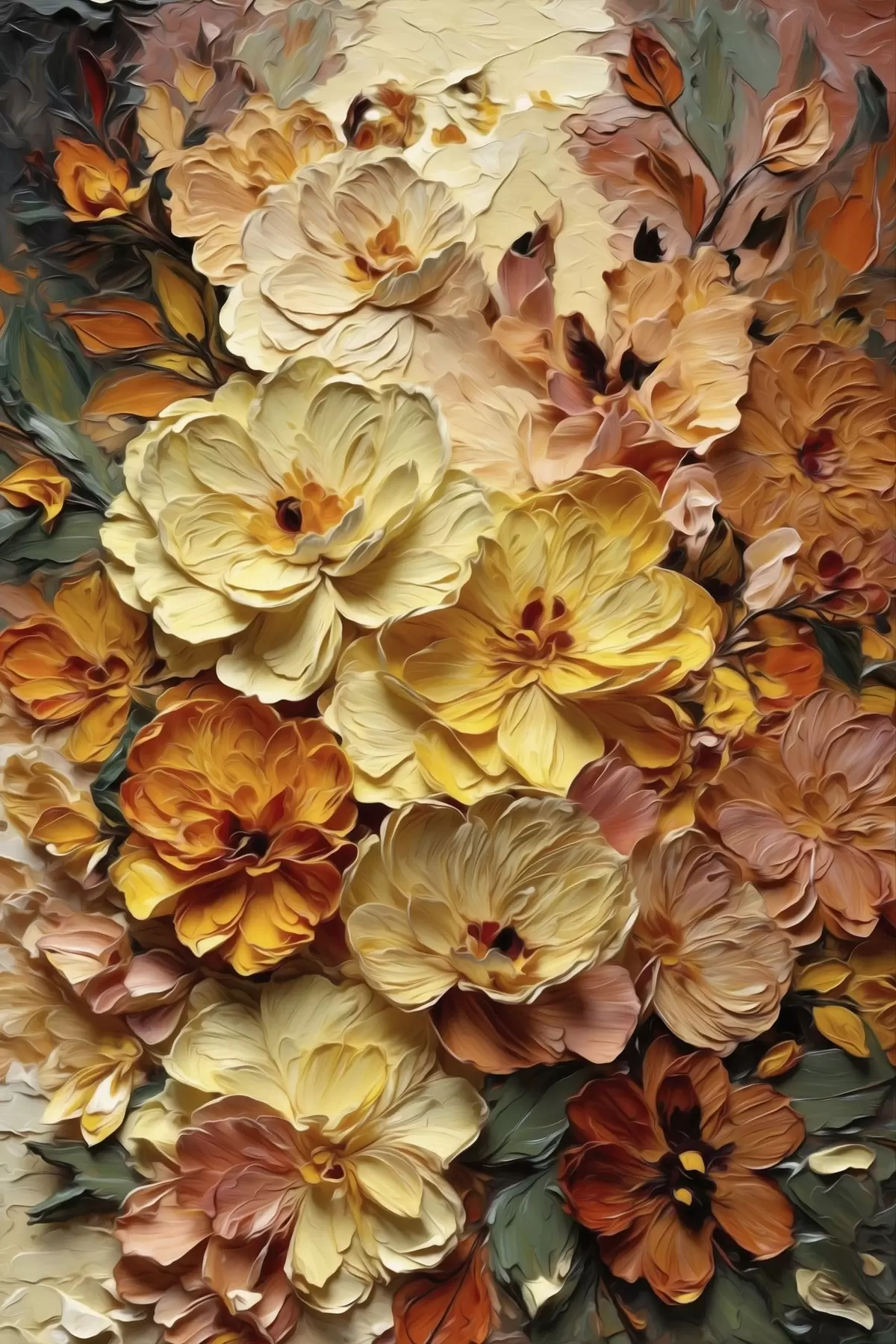 Tableau Composition luxuriante de fleurs éclatantes aux teintes chaudes Nr s47760