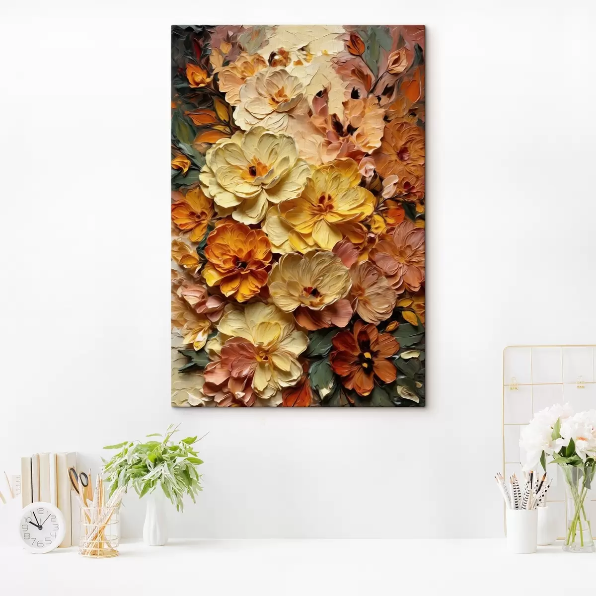 Tableau Composition luxuriante de fleurs éclatantes aux teintes chaudes s47760