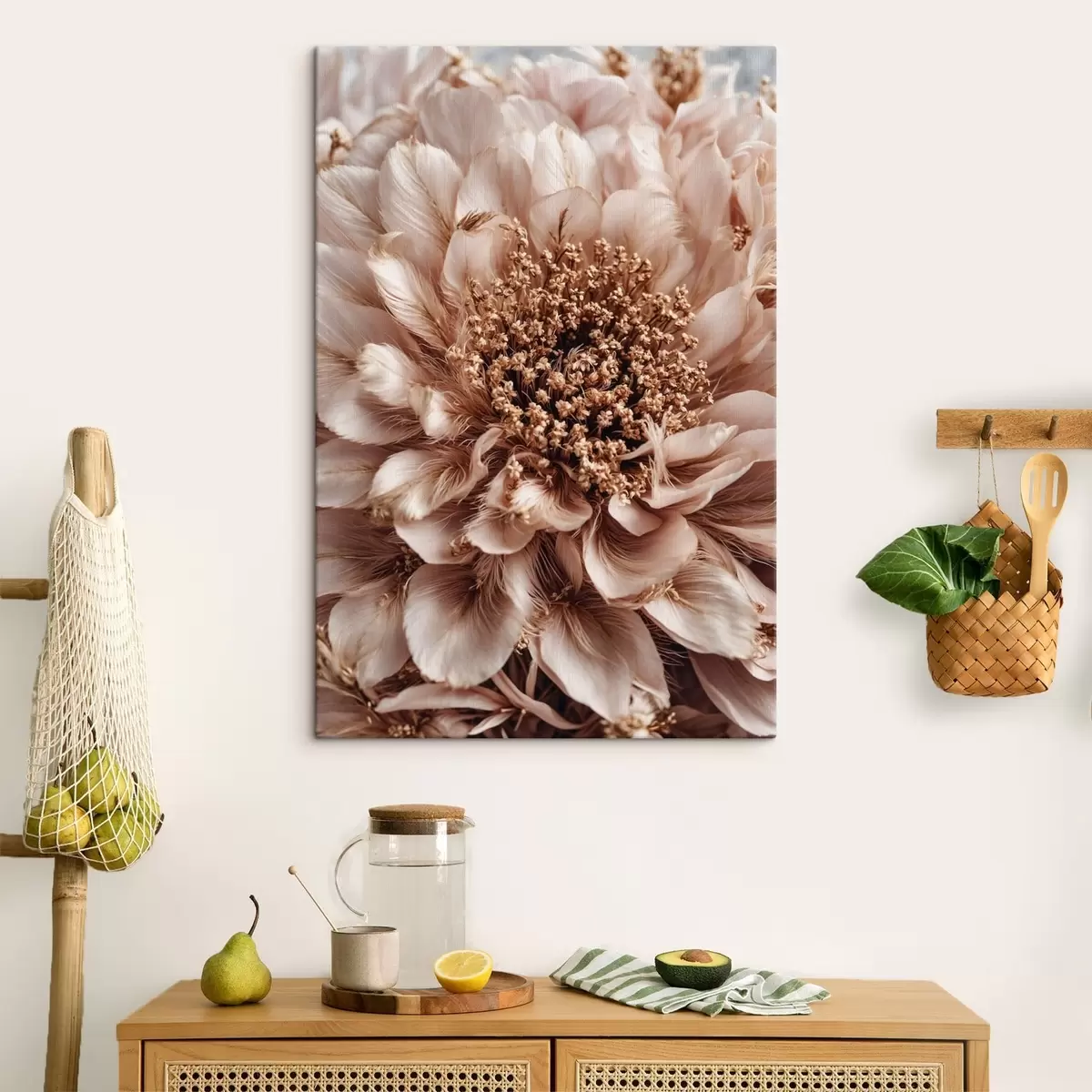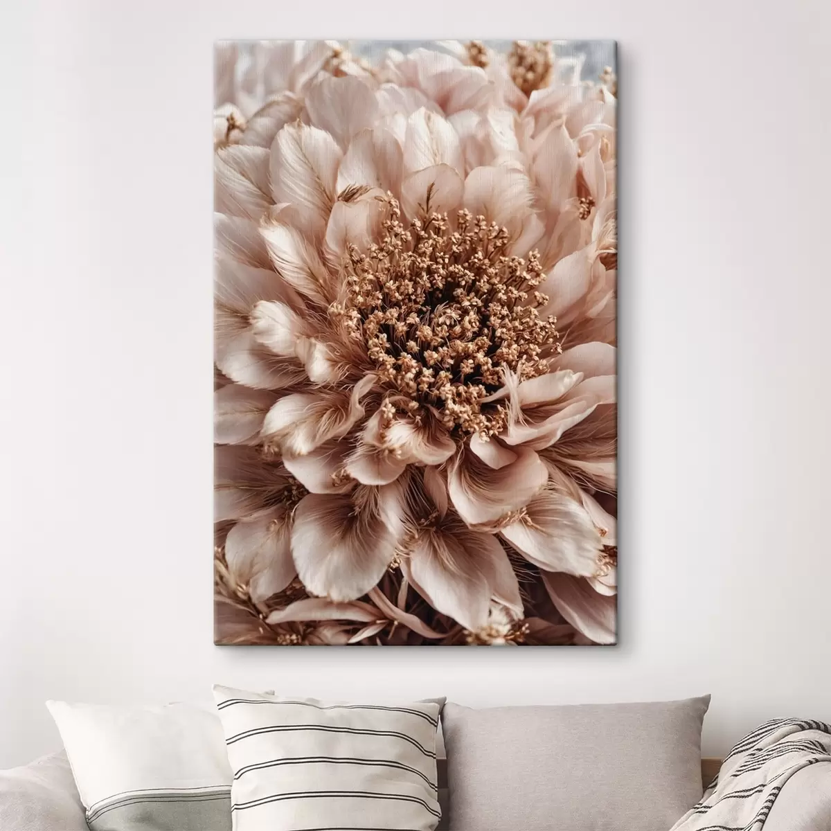 Tableau Gros plan sur une fleur pâle aux pétales richement texturés Nr s47769