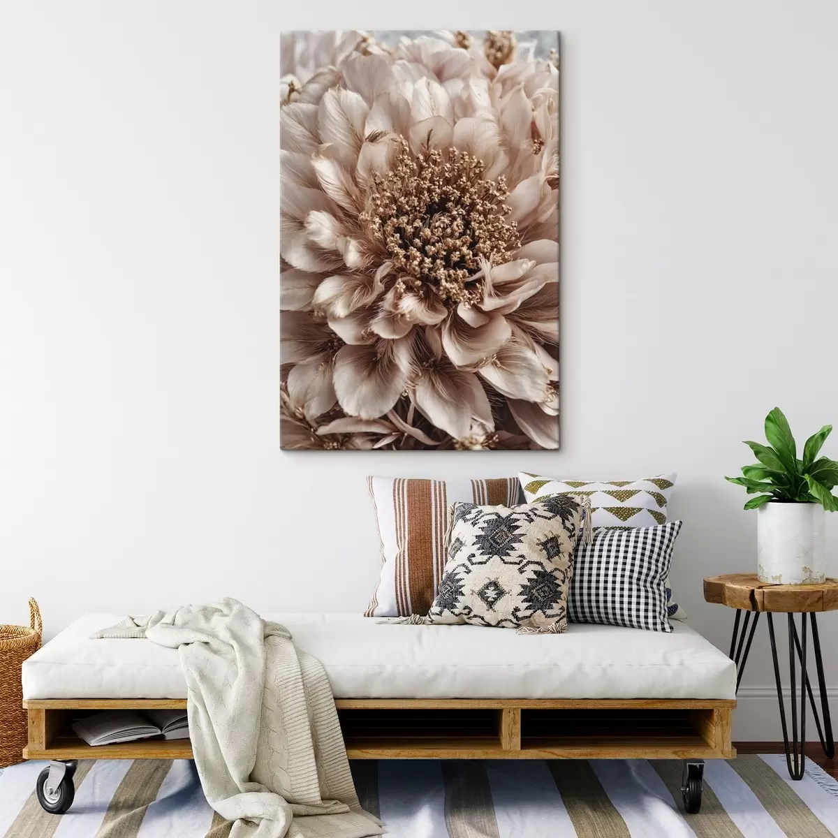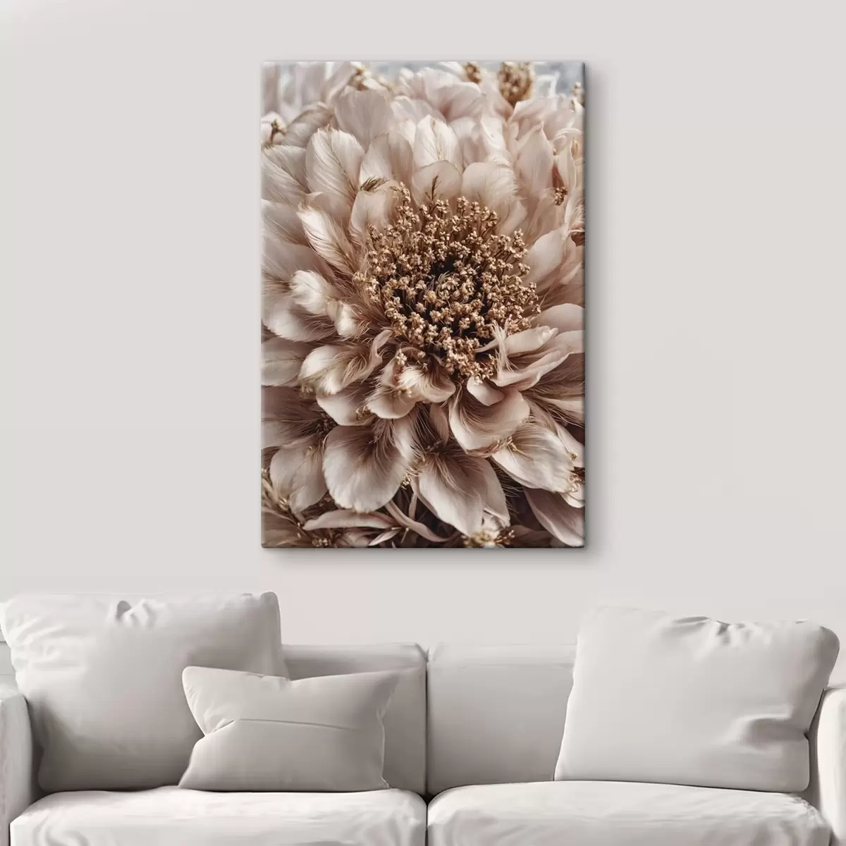 Tableau Gros plan sur une fleur pâle aux pétales richement texturés s47769