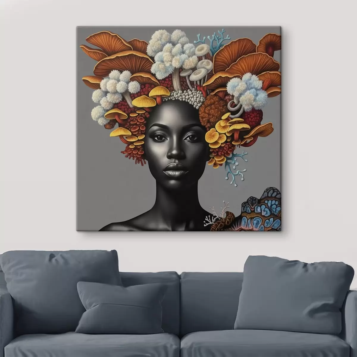 Tableau Portrait d'une femme avec des champignons s47788