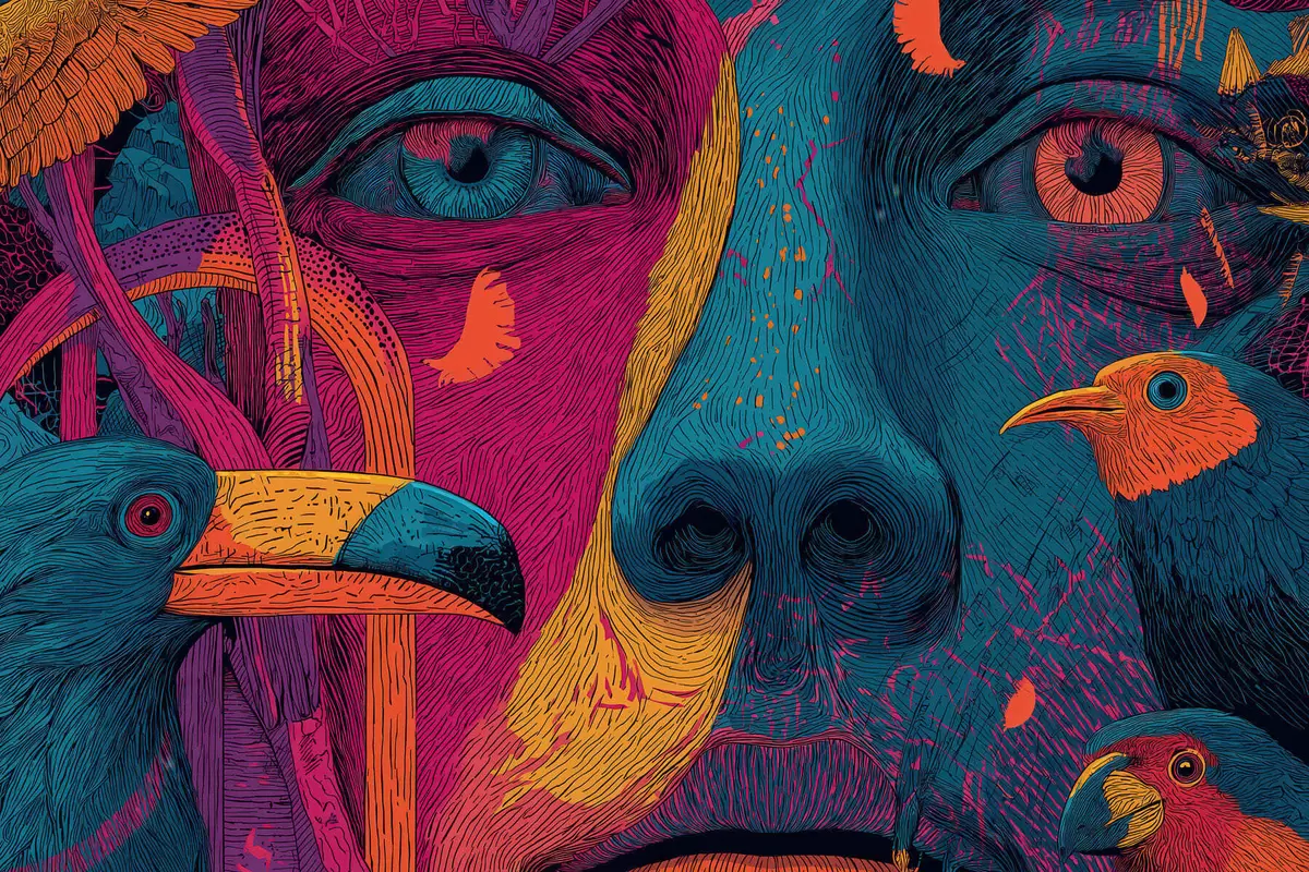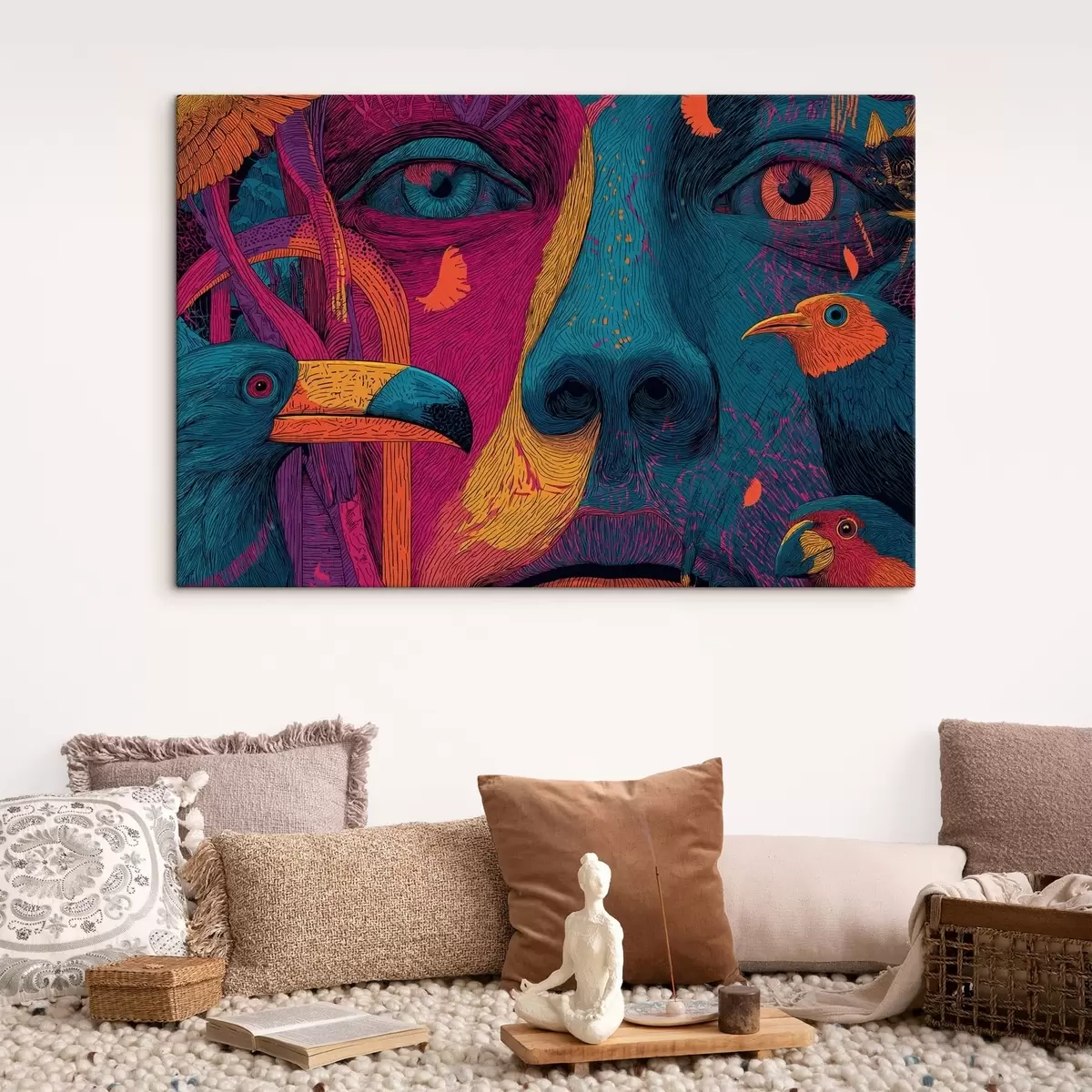 Tableau Portrait psychédélique avec des oiseaux Nr s47789