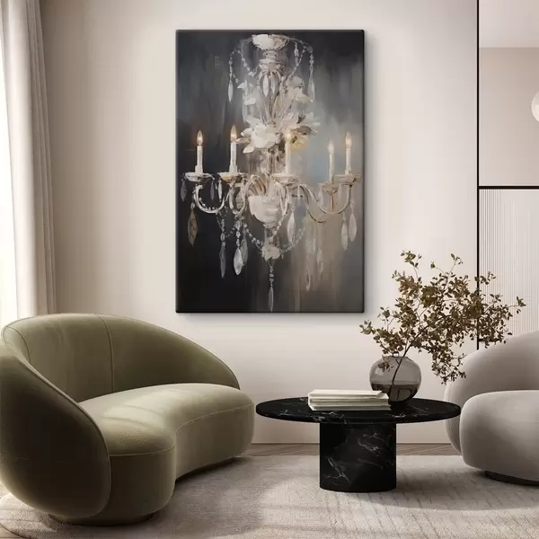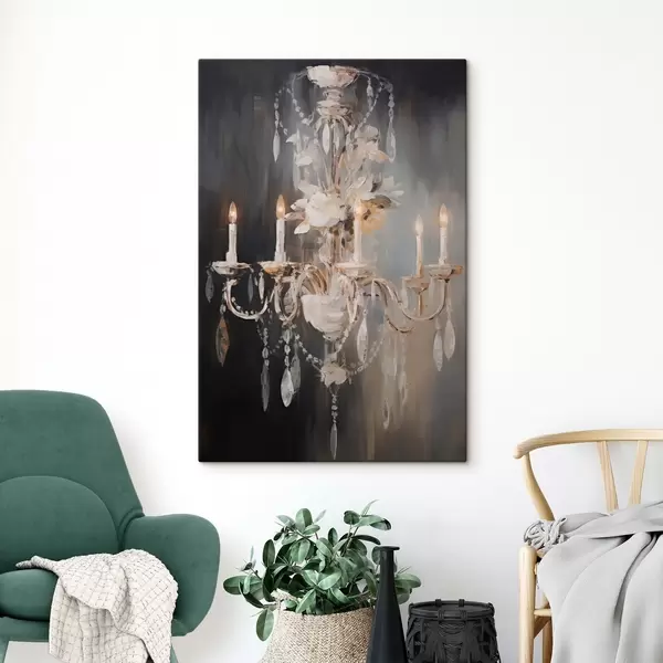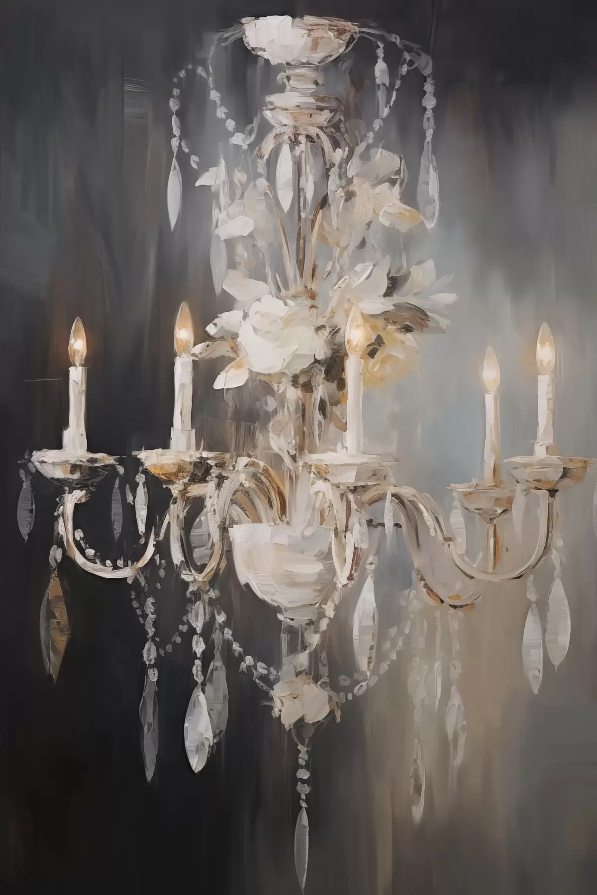 Tableau Lustre abstrait orné de bougies allumées et de motifs floraux, sur fond sombre et texturé. s47857