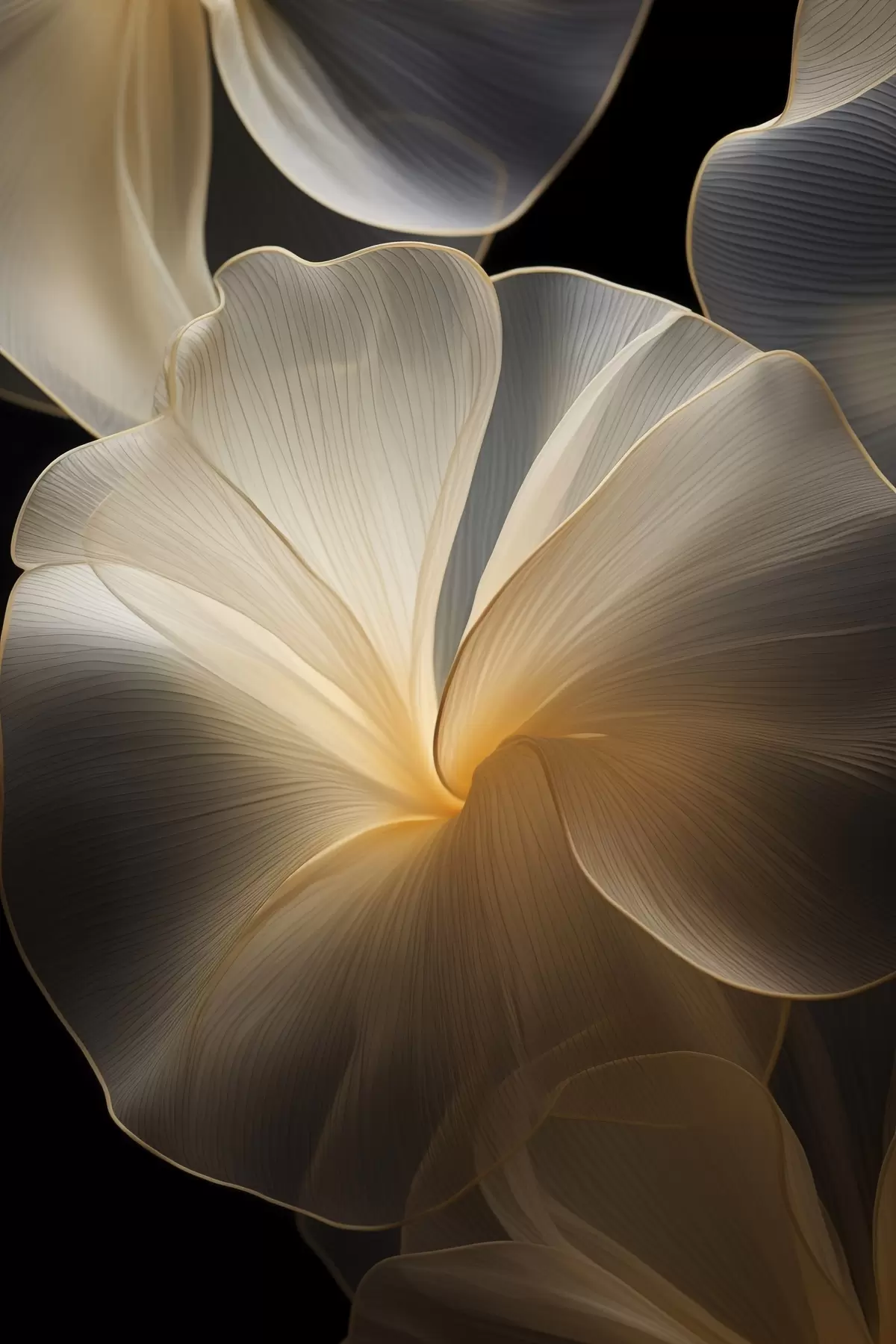 Tableau Pétales abstraits translucides aux lignes délicates, sur fond sombre s47860