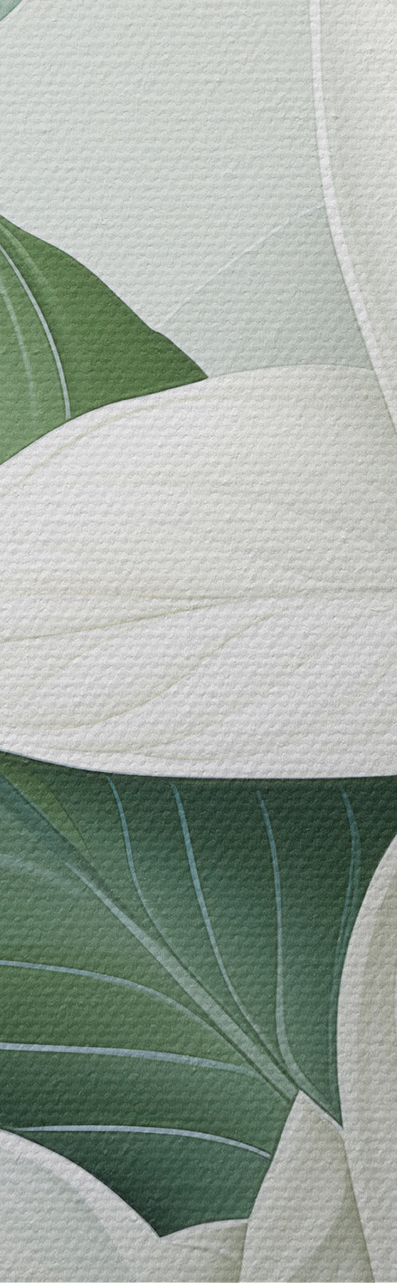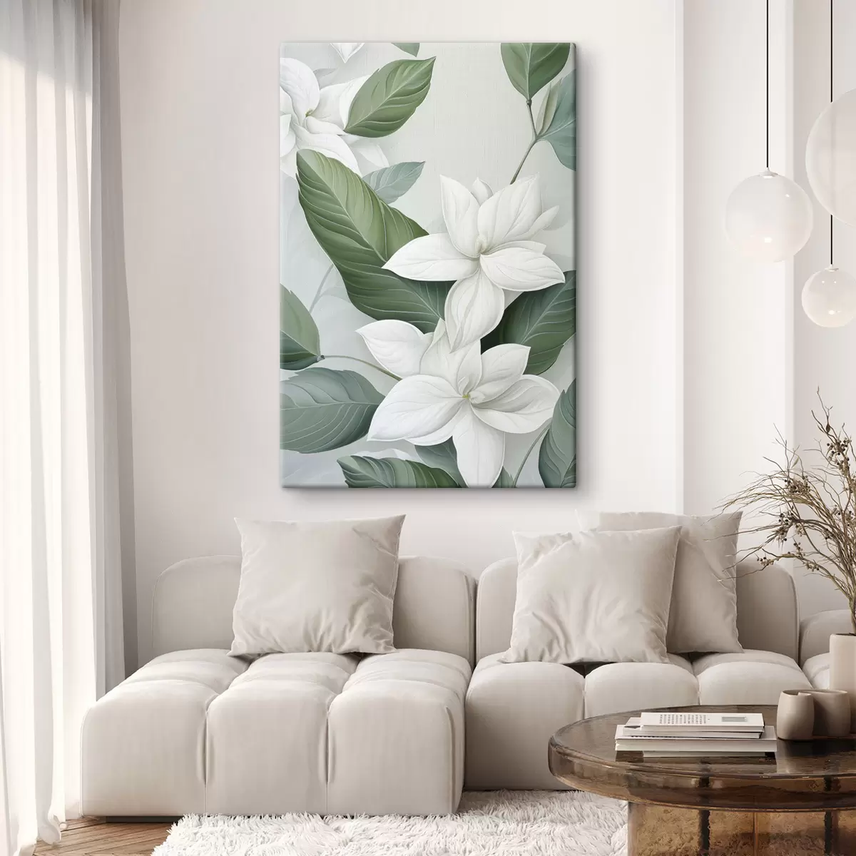 Tableau Fleurs blanches avec feuilles vertes, fond pastel Nr s47869