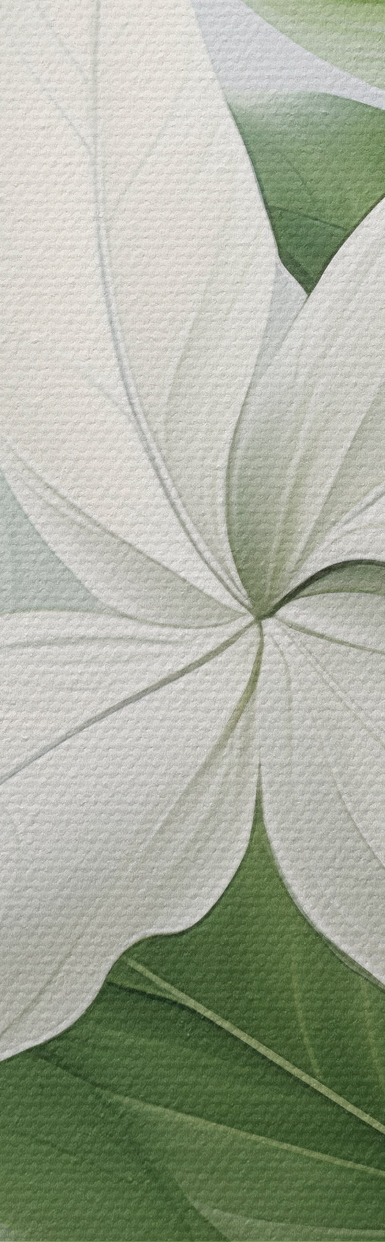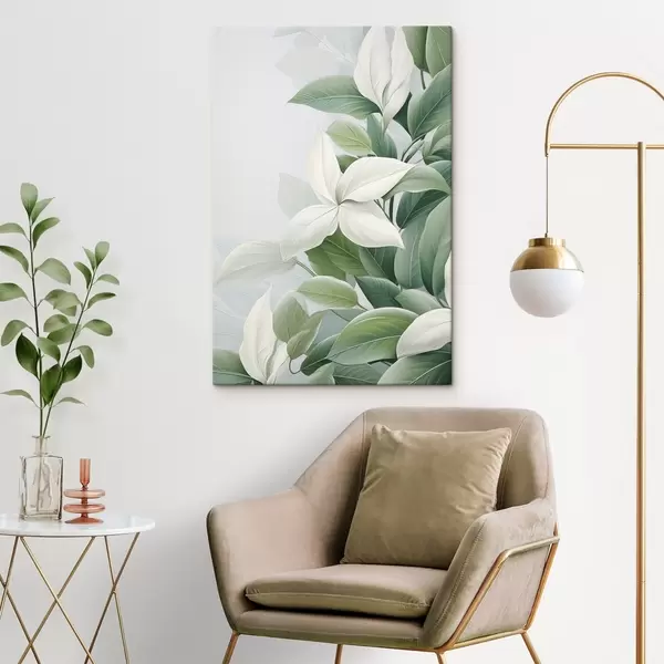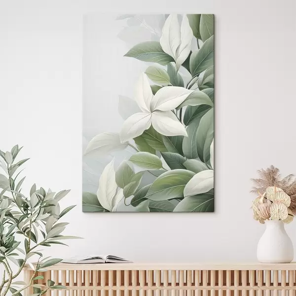 Tableau Fleurs blanches avec feuilles vertes, fond pastel Nr s47870