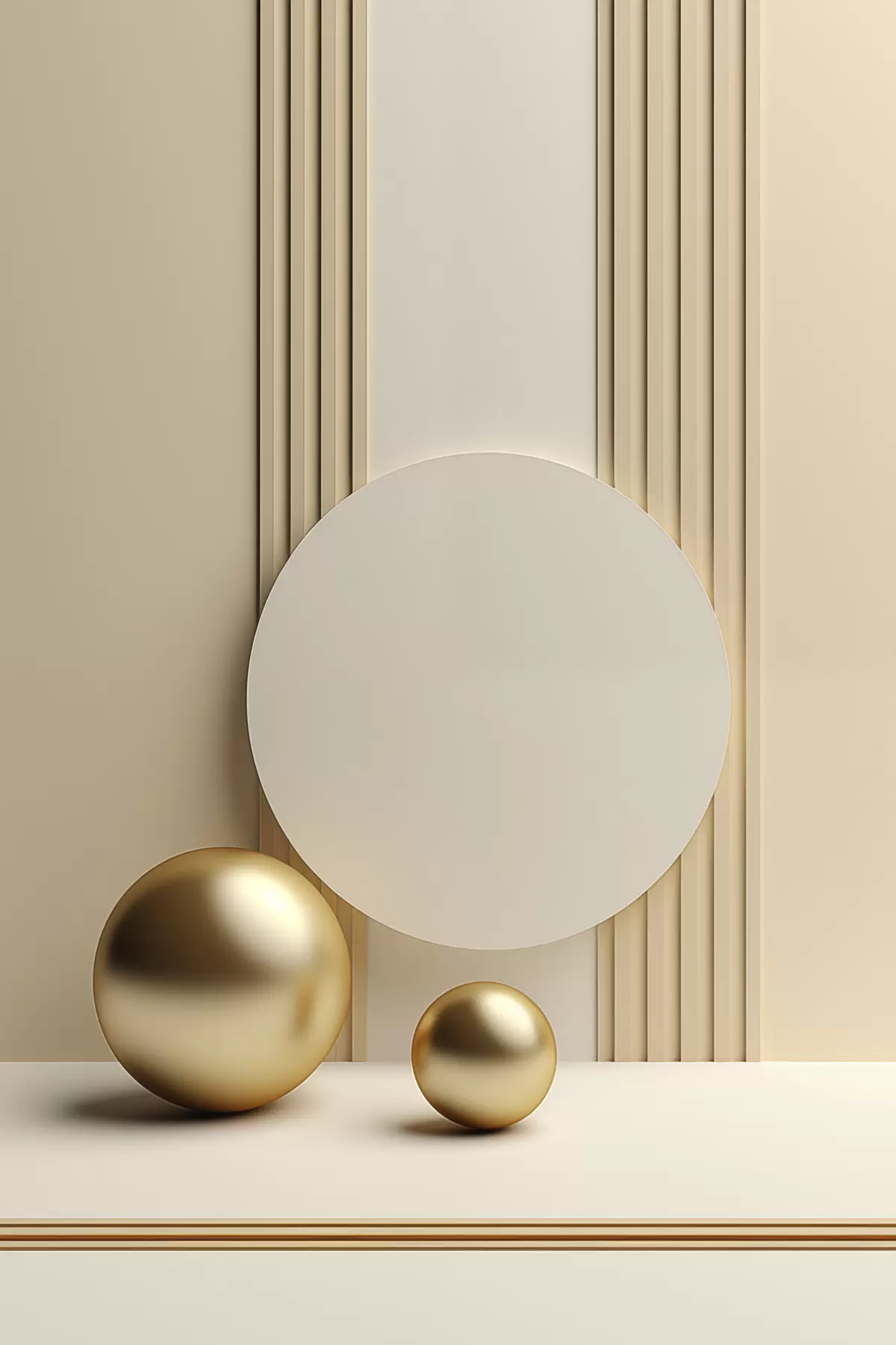 Tableau Art moderne abstrait beige avec lignes verticales et sphères Nr s47872