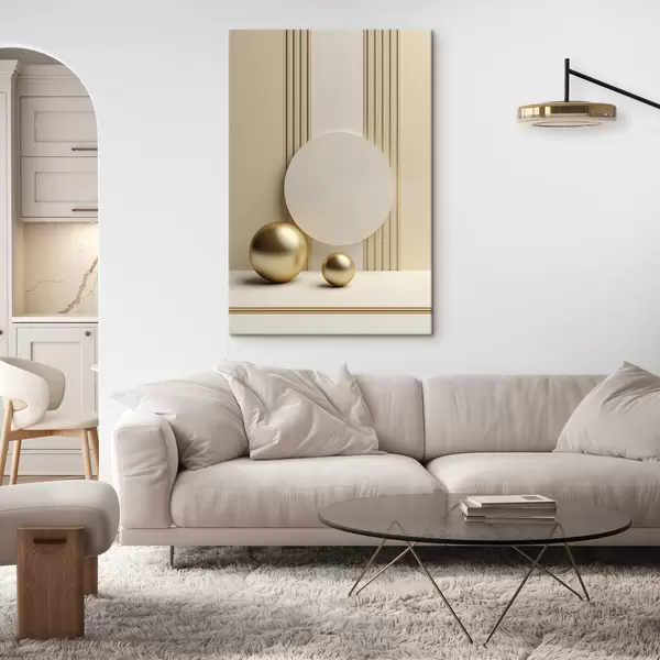 Tableau Art moderne abstrait beige avec lignes verticales et sphères s47872