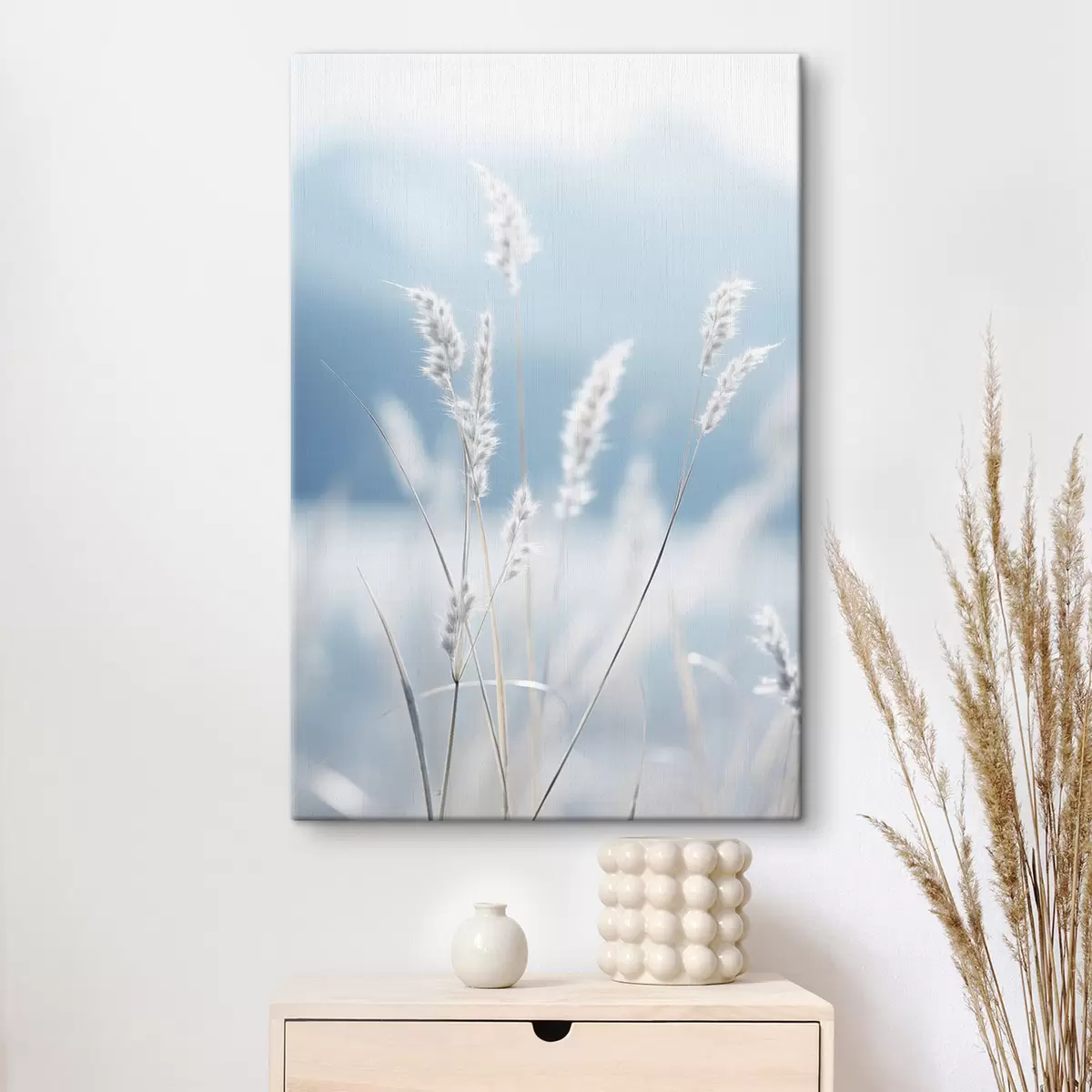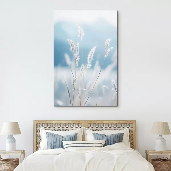 Tableau Herbe blanche et duveteuse sur fond de ciel bleu pâle, avec une faible profondeur de champ Nr s47880