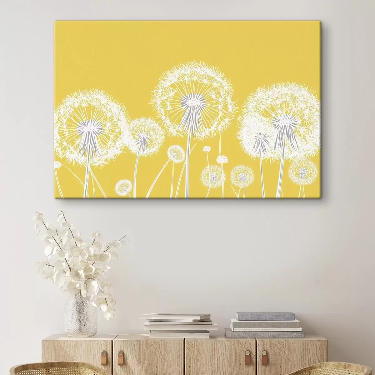 Tableau Pissenlits blancs sur fond jaune s47890
