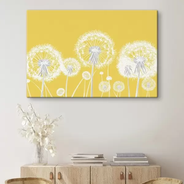 Tableau Pissenlits blancs sur fond jaune Nr s47890