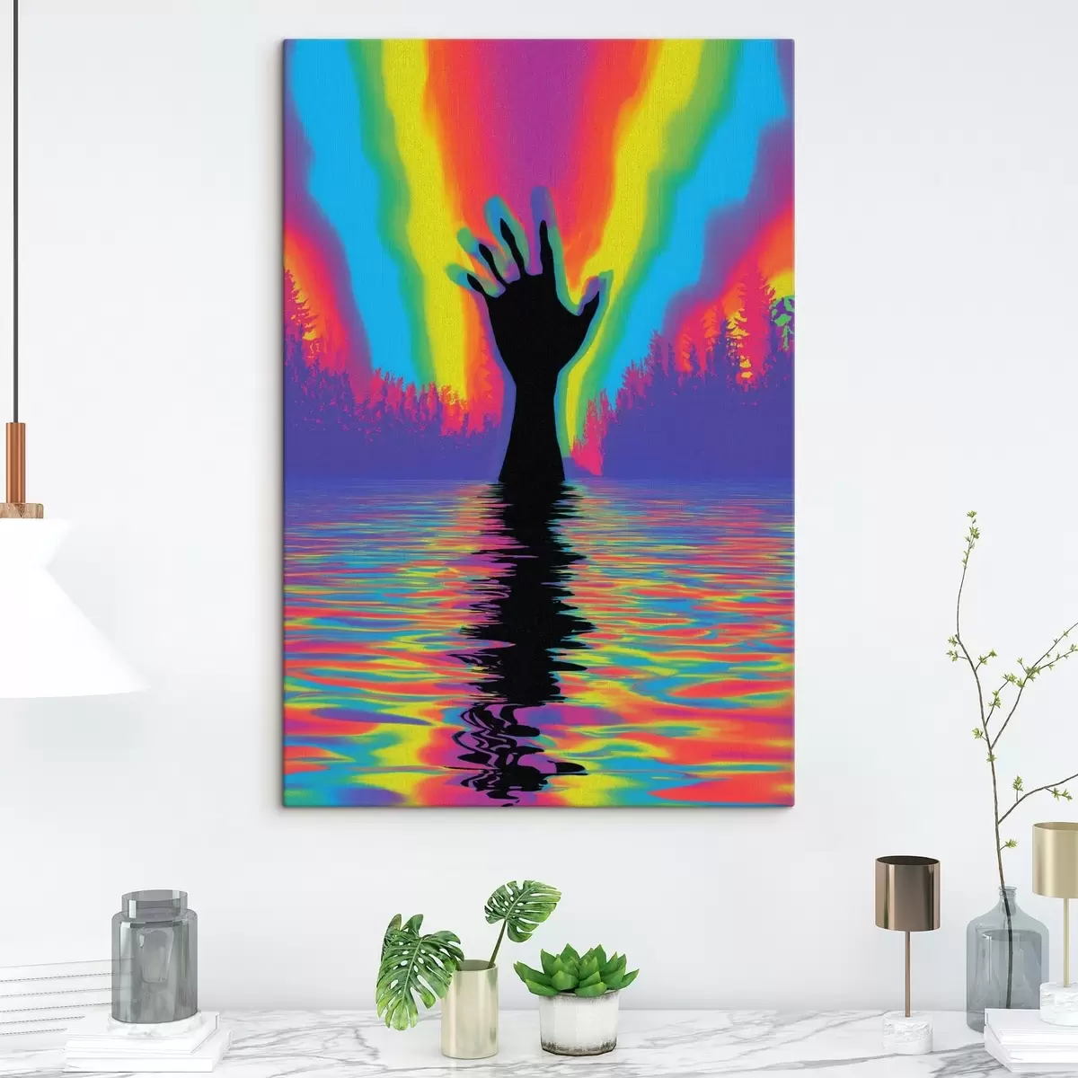 Tableau Silhouette d'une main au-dessus de l'eau s47903