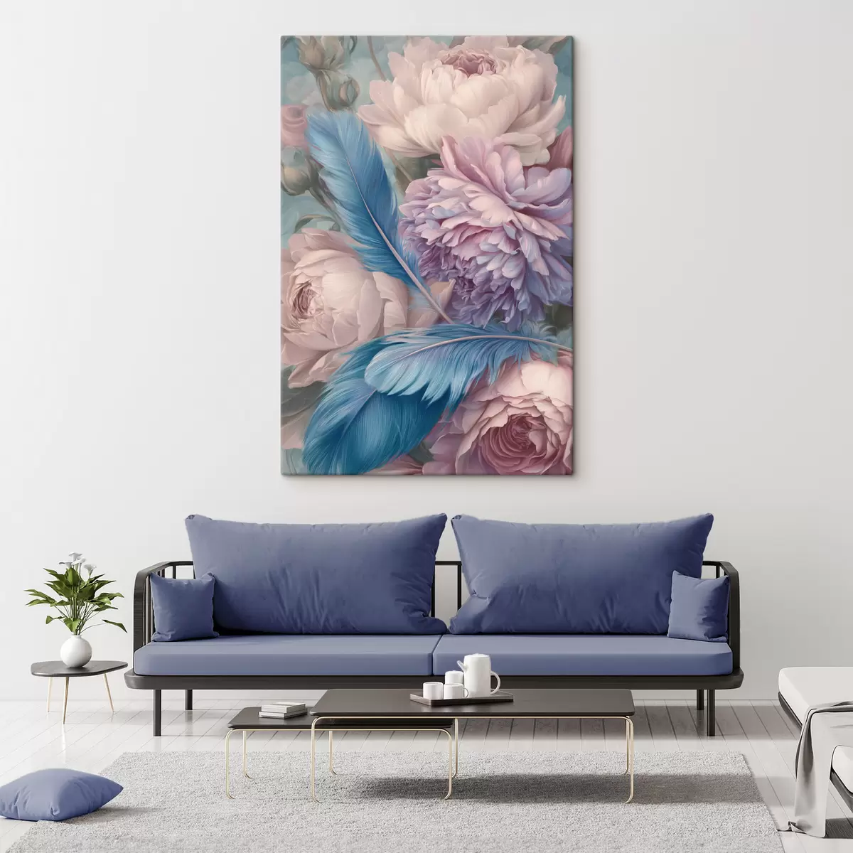 Tableau plumes parmi les pivoines s47939