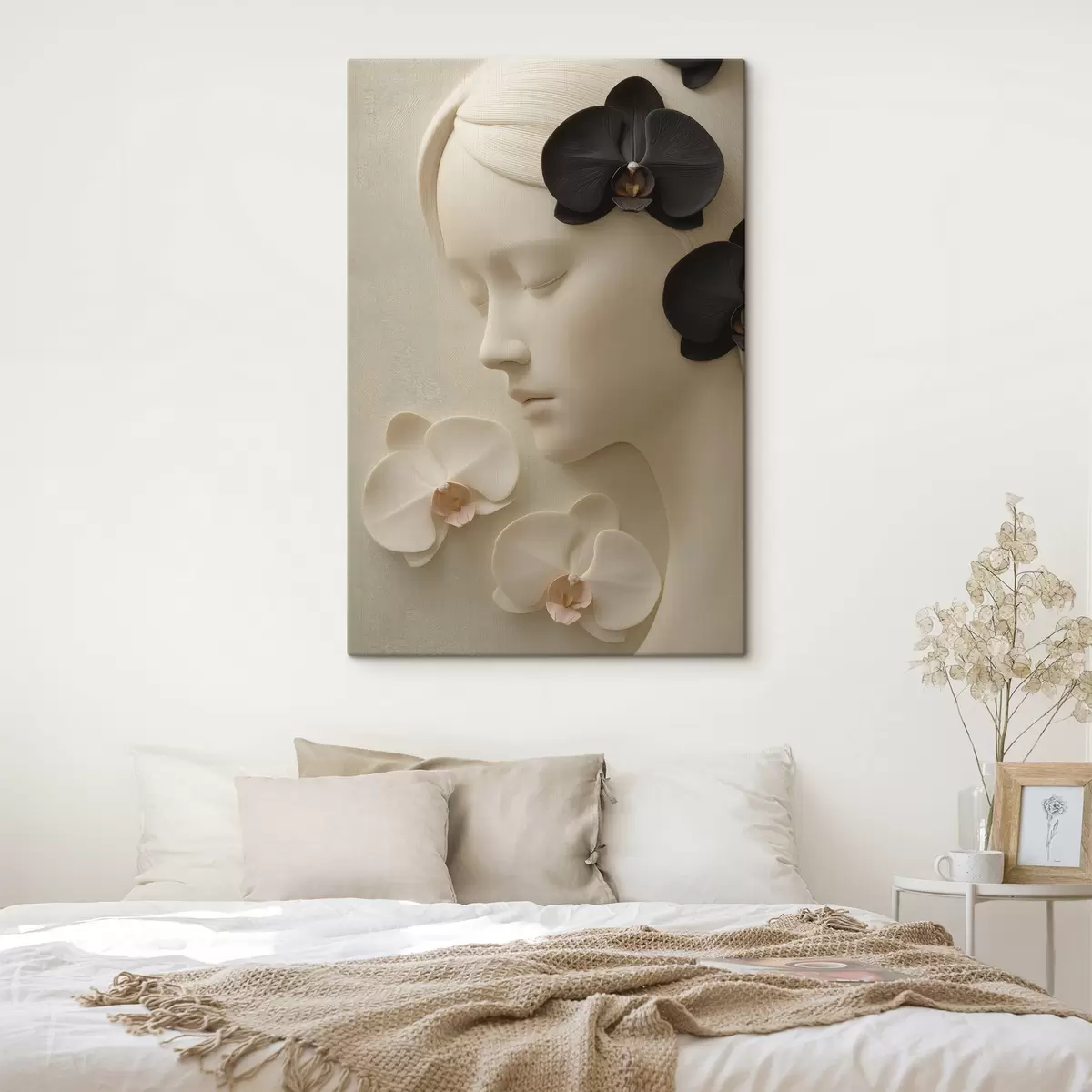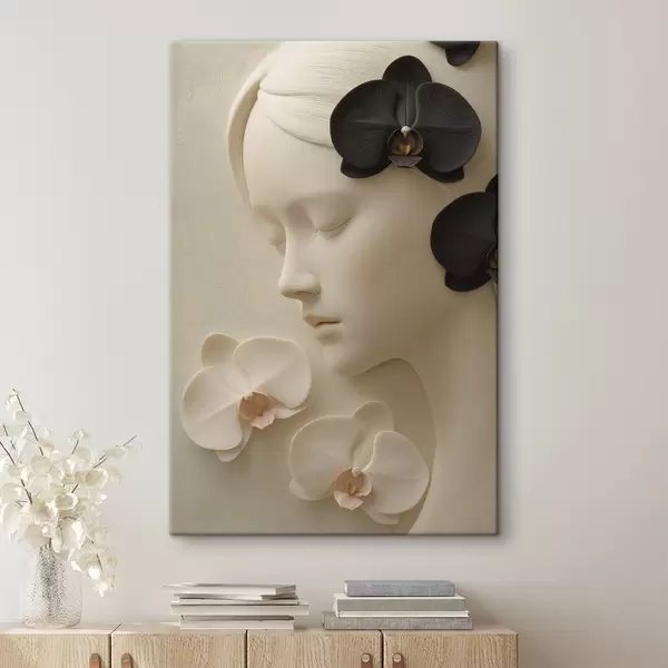 Tableau fille avec des orchidées en bas-relief Nr s47942